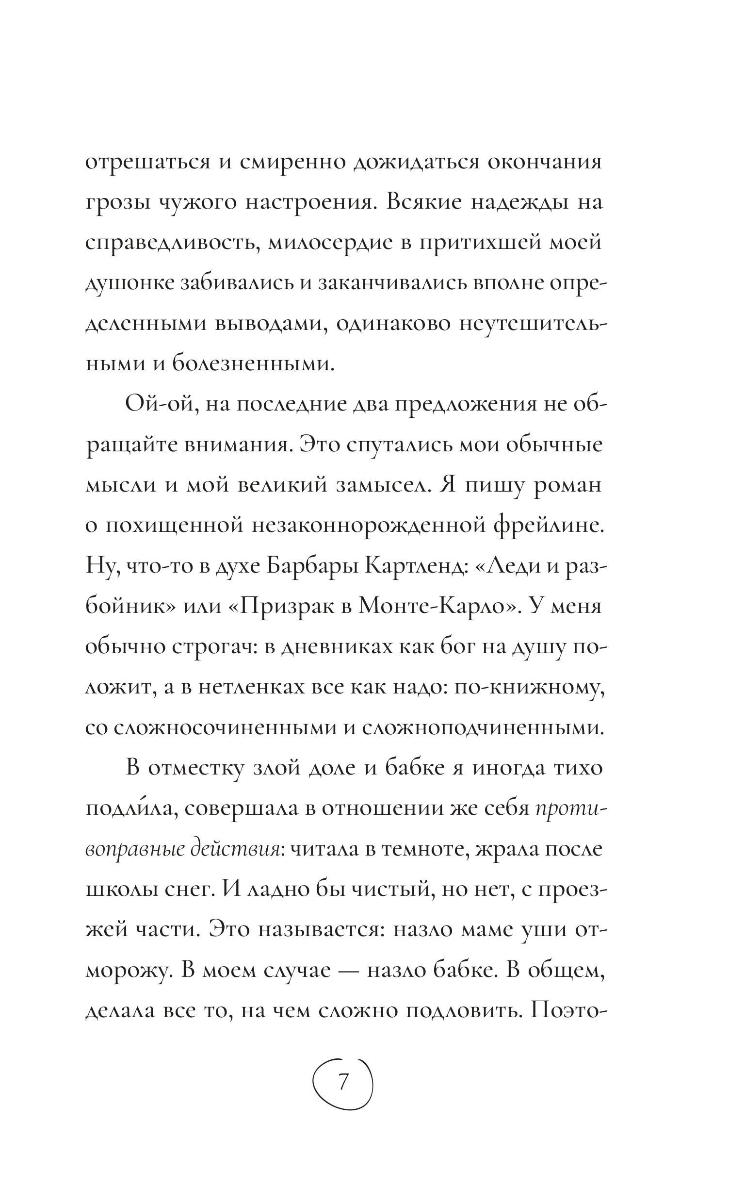 Леся, по прозвищу Татарка, учится в пищевом, сочиняет роман про фрейлину и дворцовые интриги и зачитывается Бальзаком. Она прячется в книгах от реальности, в которой ее мать сидит в тюрьме, отец отсутствует, а две ее бабушки, Люська и Хаятка, с удовольствием навели бы друг на друга порчу. Но пытаясь разглядеть в обычной жизни книжные сюжеты, Леся против своей воли оказывается втянутой в опасную историю…