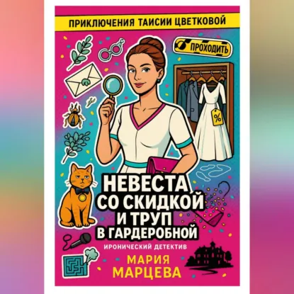 Таисия Цветкова никогда не мечтала стать детективом, но жизнь распорядилась иначе. Когда в элитном свадебном салоне среди роскошных платьев обнаруживается труп, а главной подозреваемой становится невеста, получившая заманчивую скидку, Таисии приходится взяться за расследование. Что связывает загадочную смерть с необычной акцией? Почему персонал салона ведёт себя так странно? И действительно ли скидка может стоить кому-то жизни? Вооружившись острым умом, чувством юмора и женской интуицией, Таисия погружается в мир свадебной индустрии, где за блеском атласа и кружев скрываются тёмные тайны. Ей предстоит распутать клубок лжи, предательства и алчности, попутно доказав, что самые опасные преступления часто прячутся за самыми романтичными декорациями. Добро пожаловать в мир, где каждая примерка может стать последней, а мечта о прекрасной свадьбе оборачивается детективным кошмаром! Иллюстрации автора.