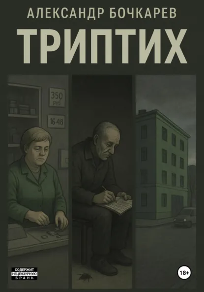 В сером магазине кассирша, 42 года, считает сдачу и часы до конца смены. Её мысли — хлеб, колбаса, покупка в “Мире наслаждений”. Ночью окно девятого этажа станет её финалом. Охранник, пожилой, разгадывает сканворды, кормит таракана Ваську, не замечая, как жизнь гаснет. Зелёный фасад магазина, холодный и угловатый, смотрит на парковку, где исчезают люди: кассирша, охранник, их следы увозит “Скорая”. Он жалеет их, хрупких, но и сам крошится от коррозии. Октябрь 2025-го, осень и война рвут волю. Триптих — это мозаика одиночества, рутины и конца, где даже фасад не вечен. Сможете ли вы разглядеть свет в этой тьме?