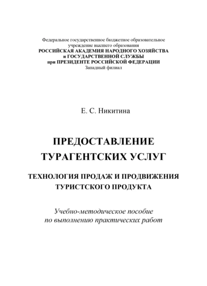 Книга Е. С. Никитиной «Предоставление турагентских услуг. Технология продаж и продвижения туристского продукта» — читать онлайн на сайте. Оставляйте комментарии и отзывы, голосуйте за понравившиеся.