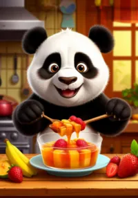 Солнечный луч пробивался сквозь листву бамбукового леса, освещая уютную кухню, где царил приятный аромат свежеиспеченных булочек. В центре этой кулинарной феерии, окруженные мукой и фруктами, стояли два очаровательных панды – Пандыч и Пандюша.