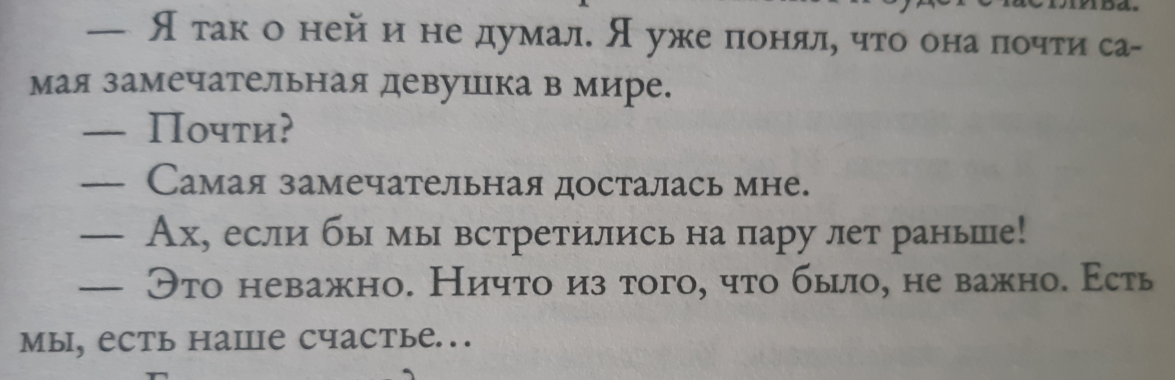 В книге нет ни страстей в клочья, ни поцелуев любви, о которых мы все привыкли читать, скорее ее предвкушение, но читать интересно. Интересны образные сравнения автора.
