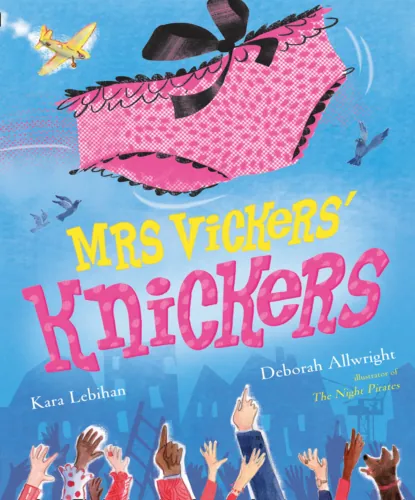 Mrs Vickers is just pegging out her favourite knickers when – whoosh – they are caught in a gust of wind and fly away. That’s the end of them, thinks Mrs Vickers. But she is wrong. This is just the beginning …Mrs Vickers’ Knickers are whisked and whirled on the breeze; on and on they sail, over the building site, through the town (where they cause traffic chaos) and round and round the rollercoaster! Will Mrs Vickers’ ever be united with her favourite pair of frilly pink knickers? A pair of frilly knickers make a hilarious journey in this exhilarating story!