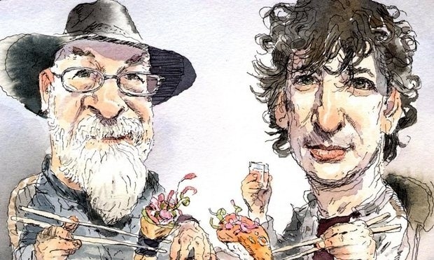 Но книгу он писал не один, а в сотрудничестве с Гейманом, привнёсшим своё видение прекрасного — и немного личинок. Вообще-то Геймана в свои книги лучше не пускать: понатащит гадостей, а ты ходи за ним убирай, воскрешай тех, кого он убил, выметай жуков и исправляй прочую экологию. Добрый Пратчетт и недобрый Гейман напоминают своих же персонажей — ангела Азирафаэля и демона Кроули, друзей-соперников по борьбе за душу маленького Сатановича. Дуализм тут правит бал: демон временами творит добро, ангел, потупив глазки, пакостит, и есть подозрение, что и Пратчетт, пользуясь случаем и работой в паре, решил чуть похулиганить и выпустить порезвиться своего внутреннего бесёнка, а все его безобразия списать на Геймана — это он, он в книжку личинок понасыпал, фу, какая гадость!