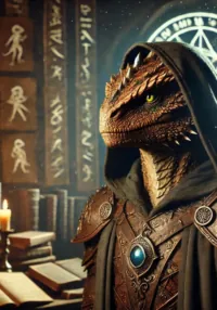 Из-за массивного корня мангрового дерева выступили двое ящеров. Они были выше мальчика в два раза, и на их чешуе красовались белые и жёлтые символы, намазанные какой-то густой глиной. Оба держали в лапах грубо вытесанные копья, а их глаза холодно сузились, заметив ребёнка.Зар ловко пробирался сквозь мангровые заросли, цепляясь когтями за корни и скользкие камни. Болотная вода поблёскивала в слабом свете, а в воздухе висел густой запах тины и влажной древесины. Эти развалины, давно проглоченные топями, казались ему древнее самой деревни. Гладкие каменные плиты, изъеденные временем, были испещрены странными знаками и фресками, которые никто из сородичей не мог объяснить.