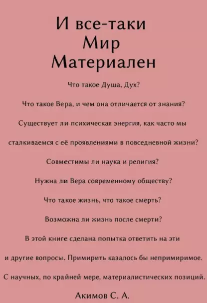 В этой книге сделана попытка ответить на эти и другие вопросы. Примирить казалось бы непримиримое. С научных, по крайней мере материалистических позиций.