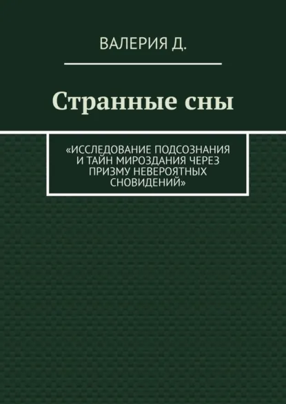 Книга Валерии Д. «Странные сны. Исследование подсознания и тайн мироздания через призму невероятных сновидений» — скачать в fb2, txt, epub, pdf или читать онлайн. Оставляйте комментарии и отзывы, голосуйте за понравившиеся.