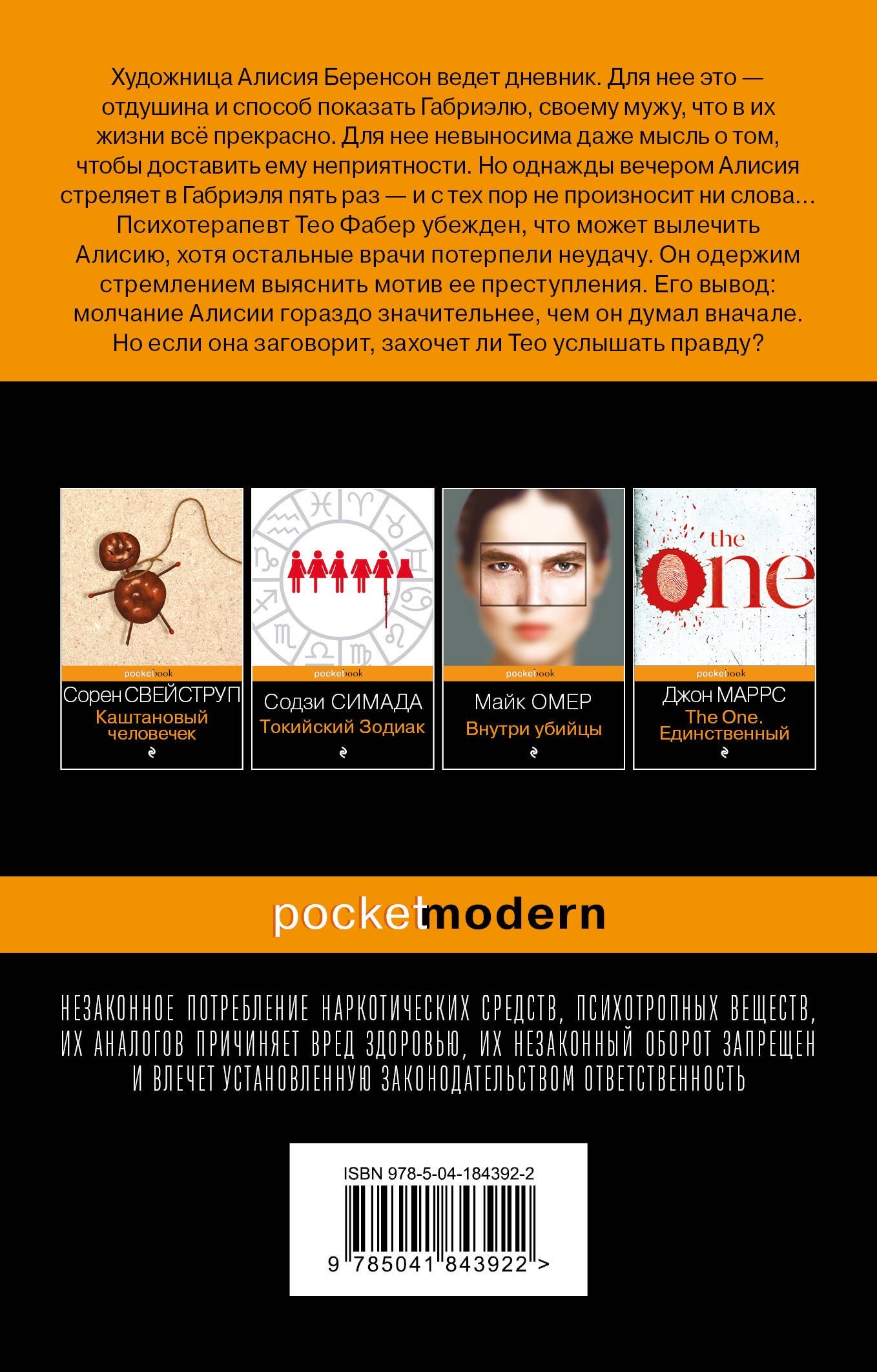 Эксперт-психотерапевт Тео Фабер убежден — он сможет помочь Алисии там, где все остальные врачи потерпели неудачу. Одержимый расследованием ее преступления, он понимает: молчание Алисии гораздо многозначительнее, чем кажется. Но захочет ли Тео услышать правду, если пациентка заговорит?