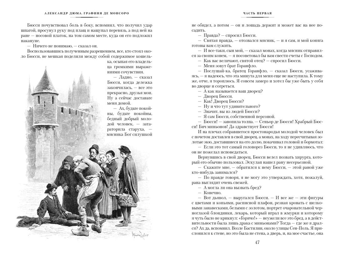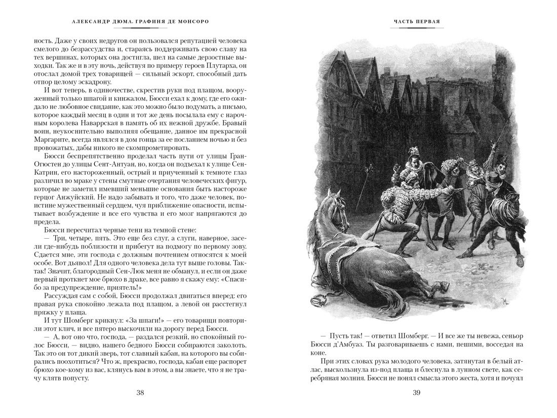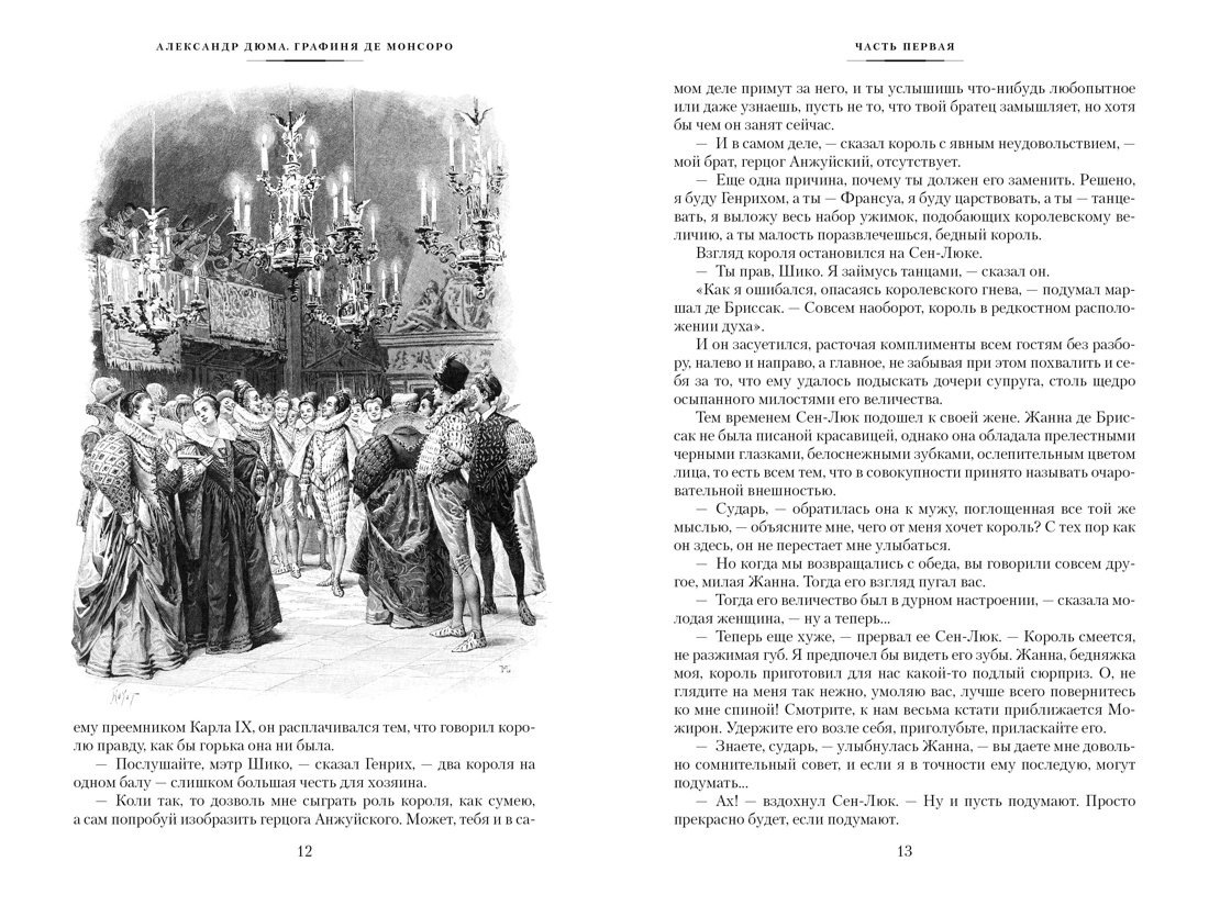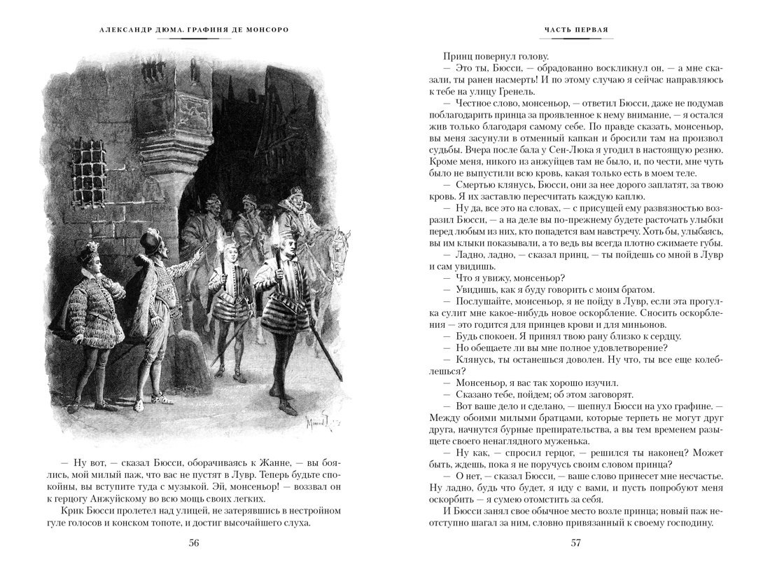 Роман Александра Дюма «Графиня де Монсоро» — один из шедевров великого писателя наравне с «Тремя мушкетерами» и «Графом Монте-Кристо». Действие этой захватывающей истории любви происходит во второй половине XVI века, во времена религиозных войн и правления Генриха III, последнего короля династии Валуа. В центре сюжета — приключения двух влюбленных: благородного графа де Бюсси и Дианы де Монсоро, которая была вынуждена выйти замуж, чтобы спасти свою честь и скрыться от посягательств брата короля. Неистощимая фантазия, стремительный стиль повествования, ярко и достоверно нарисованный исторический фон — вот те ингредиенты, из которых составлено это изысканное литературное блюдо для всех любителей историко-приключенческой литературы. В настоящем издании воспроизводится полный комплект великолепных иллюстраций известного французского художника Мориса Лелуара (1853–1940), впервые опубликованных в парижском издании 1903 года.