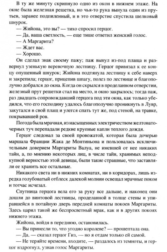 1572 год. Францией правит полубезумный король Карл IX. Желая примирить католиков с гугенотами, мать короля, Екатерина Медичи, решает выдать свою красавицу дочь Маргариту за молодого Генриха Наваррского. На свадьбу в Париж съезжается весь цвет французского дворянства. Но грядет праздник святого Варфоломея, а за ним и ночь, которая войдет в историю как одно из самых страшных событий Средневековья. В очередной том иллюстрированного собрания сочинений Александра Дюма входит знаменитая "Королева Марго" - остросюжетная фреска эпохи последних из Валуа.