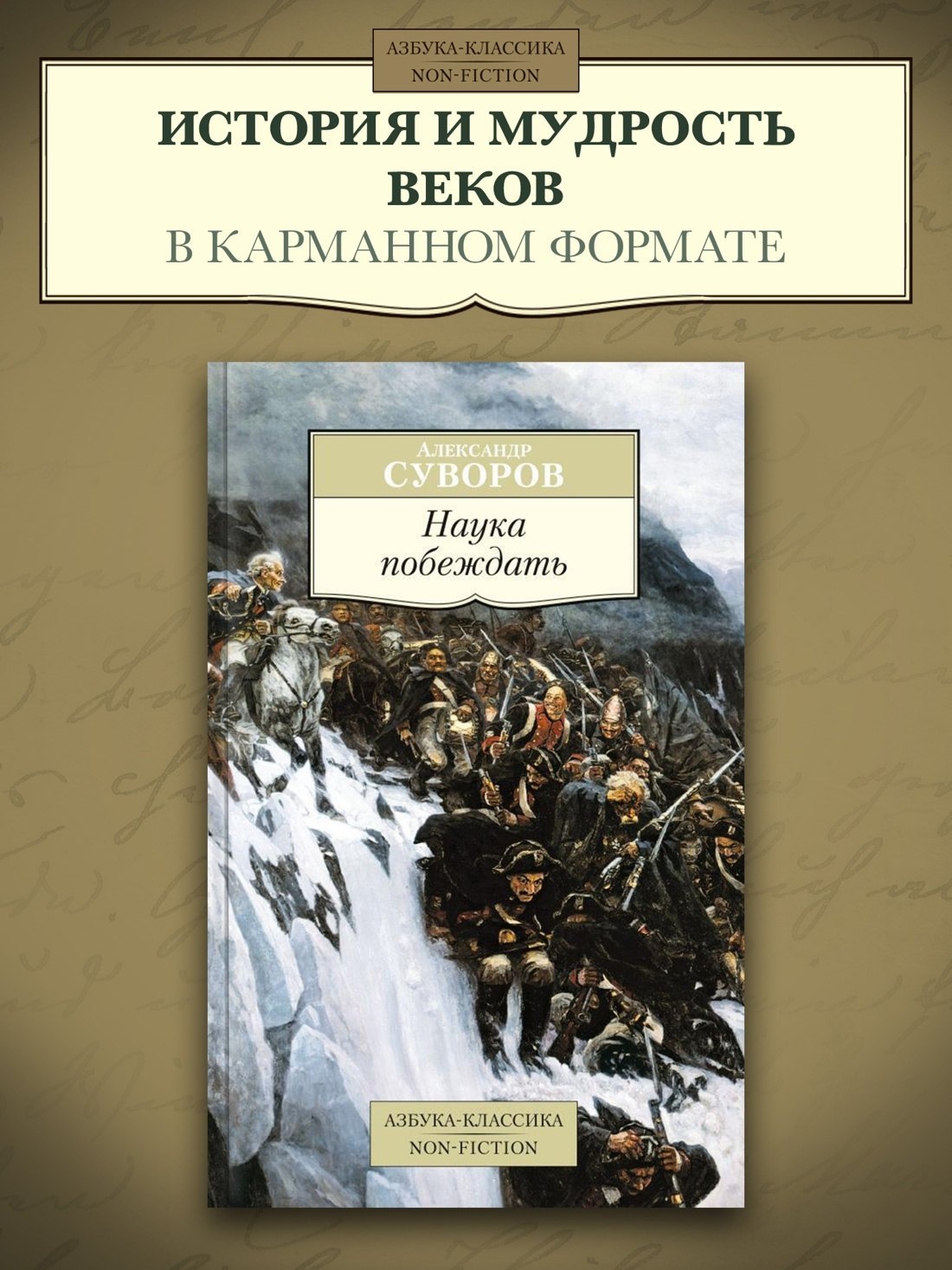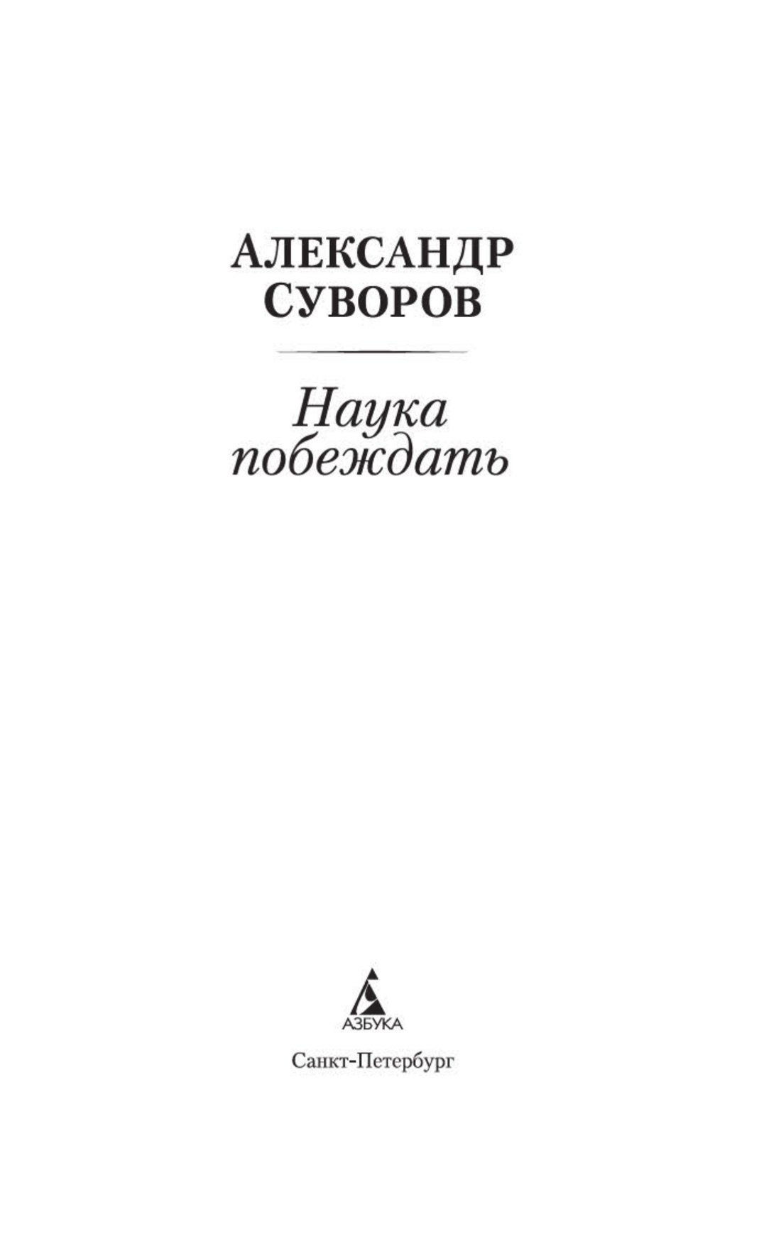 В настоящем издании наряду с выдающимся произведением военной мысли «Наукой побеждать» представлены автобиография Суворова и его письма к дочери, Суворочке, в которых полководец открывается как любящий и заботливый отец. Дополнят образ «солдата-фельдмаршала» и чудака, каковым Суворова признавали многие, воспоминания о нем современников.
