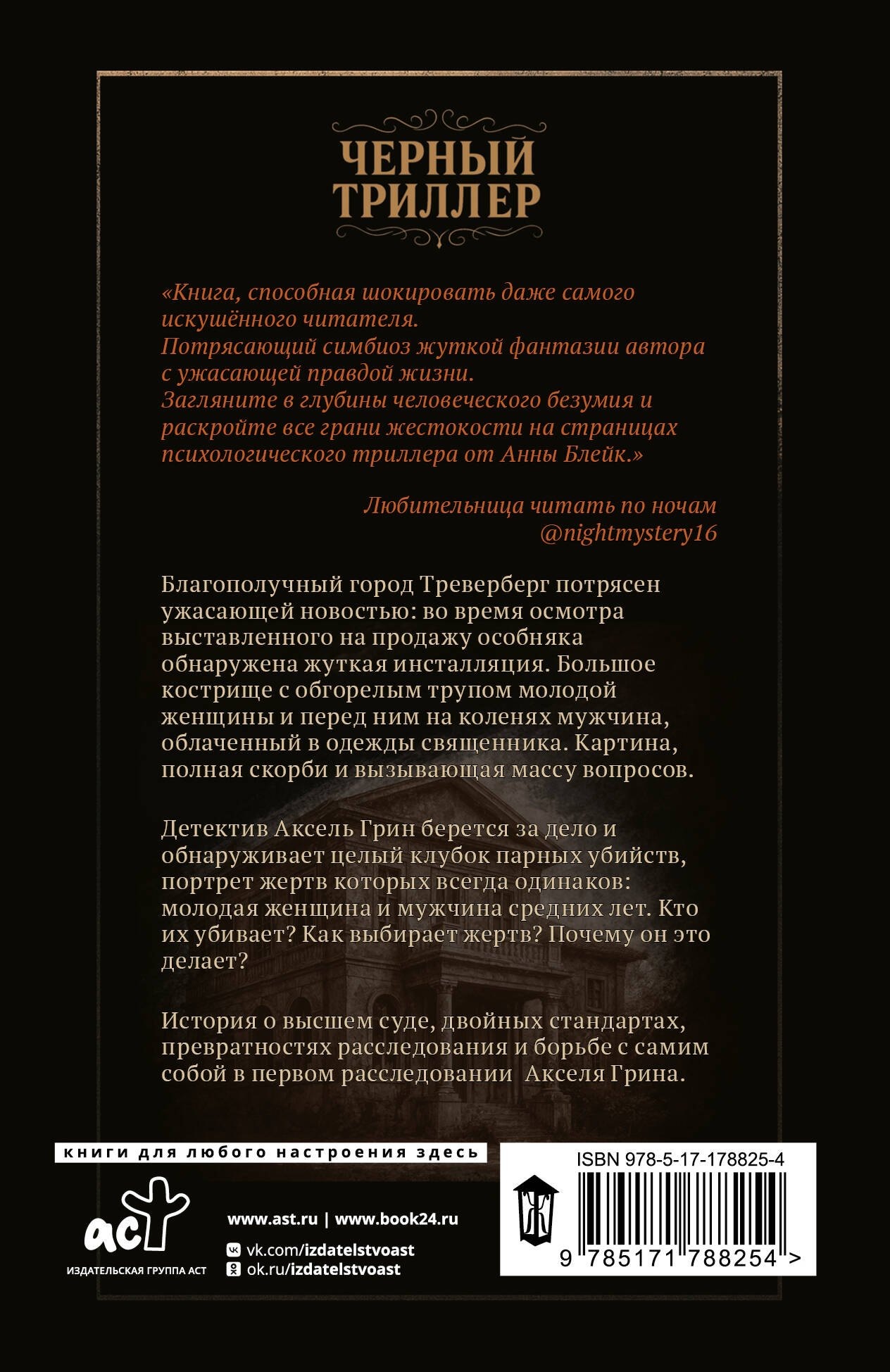 Благополучный город Треверберг потрясен ужасающей новостью: во время осмотра выставленного на продажу особняка обнаружена жуткая инсталляция. Большое кострище с обгорелым трупом молодой женщины и перед ним на коленях мужчина, облаченный в одежды священника. Картина, полная скорби и вызывающая массу вопросов. Детектив Аксель Грин берется за дело и обнаруживает целый клубок парных убийств, портрет жертв которых всегда одинаков: молодая женщина и мужчина средних лет. Кто их убивает? Как выбирает жертв? Почему он это делает?
