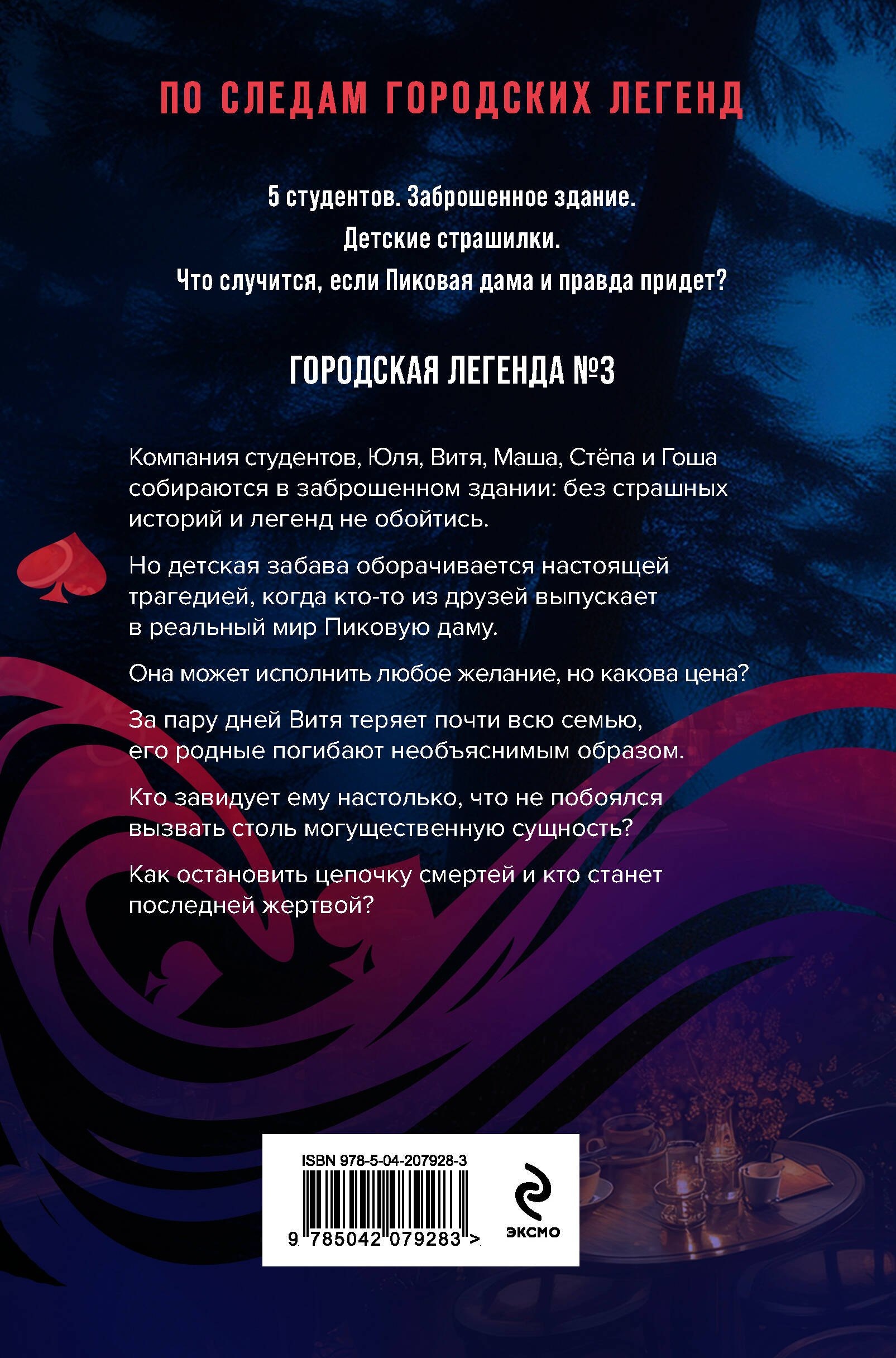 Компания студентов, Юля, Витя, Маша, Стёпа и Гоша, собираются в заброшенном здании: без страшных историй и легенд не обойтись. Но детская забава оборачивается настоящей трагедией, когда кто-то из компании друзей выпускает в реальный мир Пиковую даму. Она может исполнить любое желание, но какова цена? За пару дней Витя теряет почти всю семью, его родные погибают необъяснимым образом. Кто завидует ему настолько, что не побоялся вызвать столь могущественную сущность? Как остановить цепочку смертей и кто станет последней жертвой?