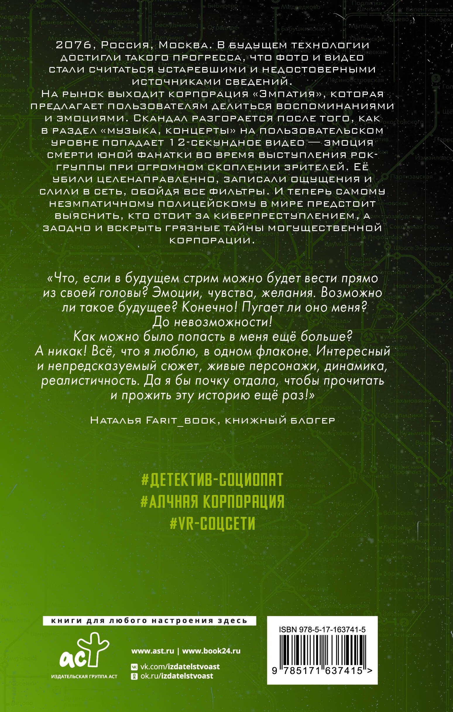 2076, Россия, Москва. В будущем технологии достигли такого прогресса, что фото и видео стали считаться устаревшими и недостоверными источниками сведений. На рынок выходит корпорация «Эмпатия», которая предлагает пользователям делиться воспоминаниями и эмоциями. Скандал разгорается после того, как в раздел «музыка, концерты» на пользовательском уровне попадает 12-секундное видео — эмоция смерти юной фанатки во время выступления рок-группы при огромном скоплении зрителей. Её убили целенаправленно, записали ощущения и слили в сеть, обойдя все фильтры. И теперь самому неэмпатичному полицейскому в мире предстоит выяснить, кто стоит за киберпреступлением, а заодно и вскрыть грязные тайны могущественной корпорации.