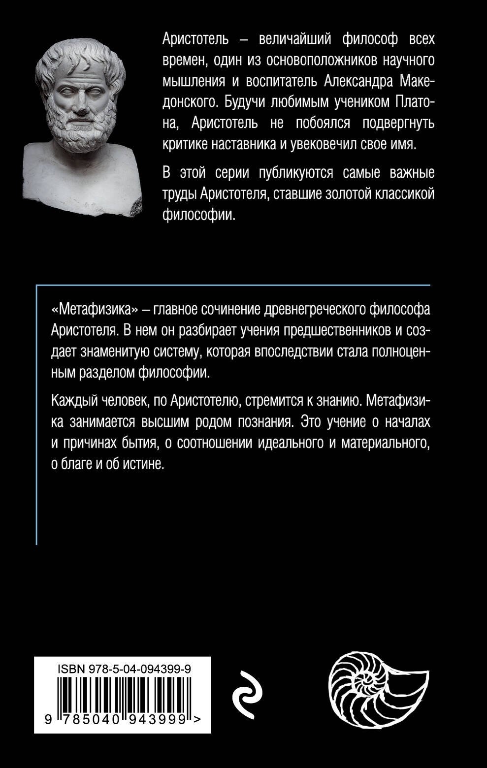 «Метафизика» — главное сочинение древнегреческого философа. В нем он разбирает учения предшественников и создает знаменитую систему, которая впоследствии стала полноценным разделом философии.