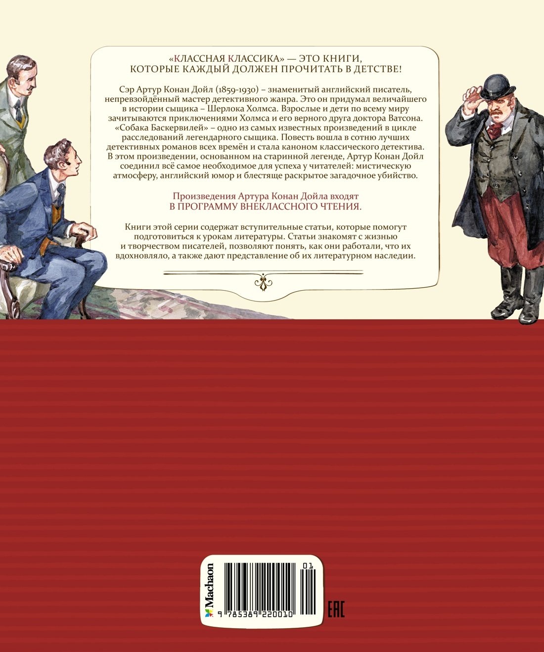 Сэр Артур Конан Дойл (1859–1930) – знаменитый английский писатель, непревзойдённый мастер детективного жанра. Это он придумал величайшего в истории сыщика – Шерлока Холмса. Взрослые и дети по всему миру зачитываются приключениями Холмса и его верного друга доктора Ватсона. «Собака Баскервилей» – одно из самых известных произведений в цикле расследований легендарного сыщика. Повесть вошла в сотню лучших детективных романов всех времён и стала каноном классического детектива. В этом произведении, основанном на старинной легенде, Артур Конан Дойл соединил всё самое необходимое для успеха у читателей: мистическую атмосферу, английский юмор и блестяще раскрытое загадочное убийство.