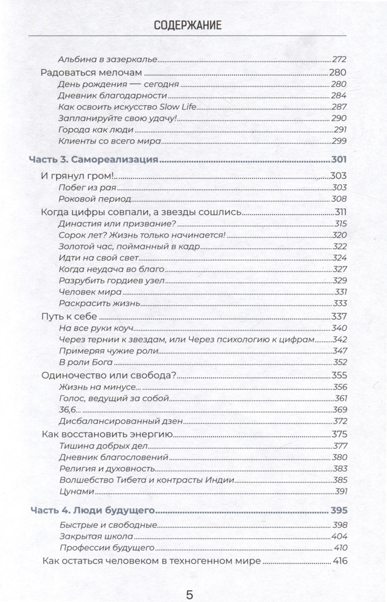 На ее консультациях по радио и лично люди задают самые важные для них вопросы. Что означает определенная дата рождения и к чему она готовит человека? Можно ли изменить свою судьбу, поменяв день рождения в паспорте? Почему иногда бывают периоды, когда все валится из рук, и что с ними делать? Как построить крепкую семью и доверительные отношения? Как решиться на переезд или увольнение с нелюбимой работы? Конечно, невозможно ответить на все эти вопросы в одной книге. Цель ее показать закономерности, зная которые, вы сможете увереннее делать собственный выбор. Или внезапно посмотреть в другую сторону, о которой до этой книги даже не задумывались.