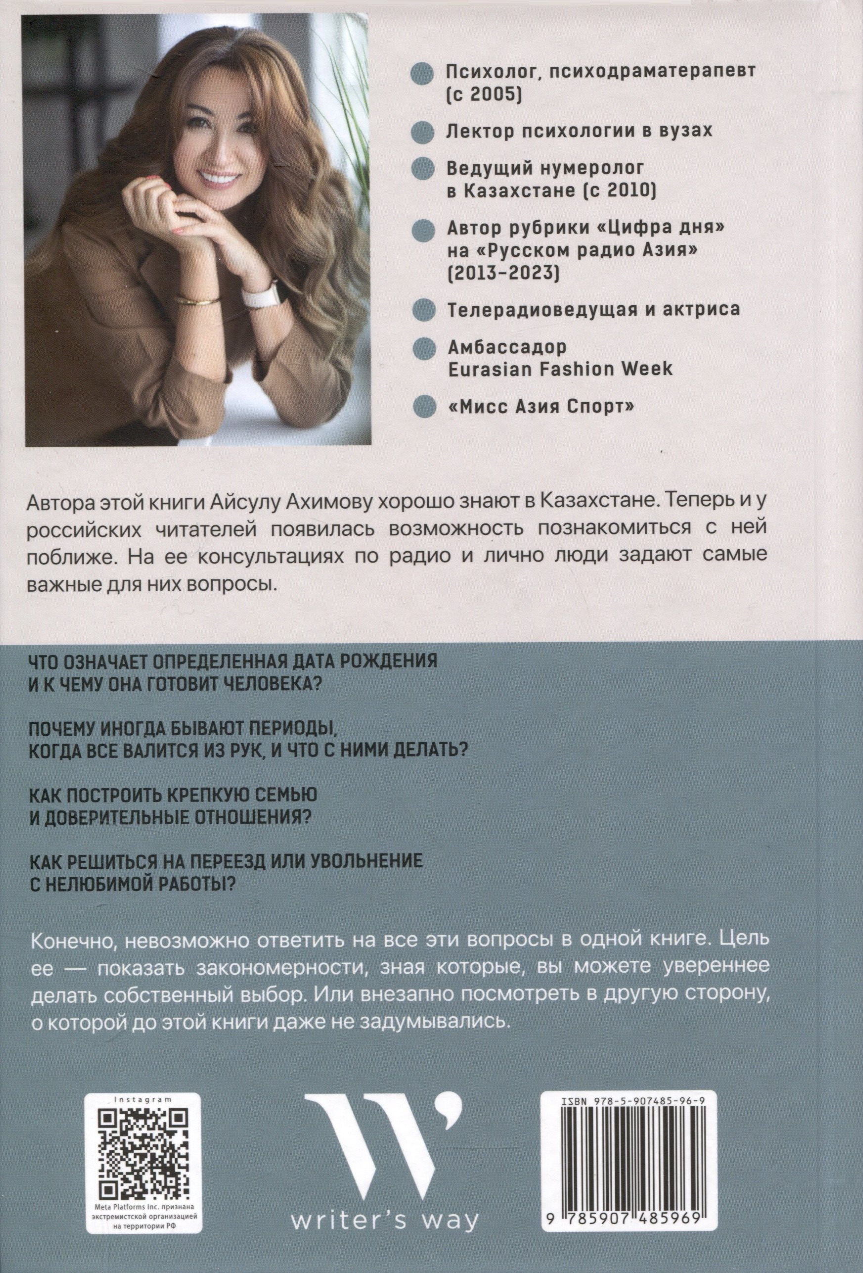 Автора этой книги Айсулу Ахимову хорошо знают в Казахстане. Она более десяти лет вела свою рубрику и прямые эфиры на «Русском радио. Азия», психолог, психодраматерапевт, эксперт-нумеролог, в прошлом актриса, модель и «Мисс Азия Спорт». Теперь и у российских читателей появилась возможность познакомиться с ней поближе.