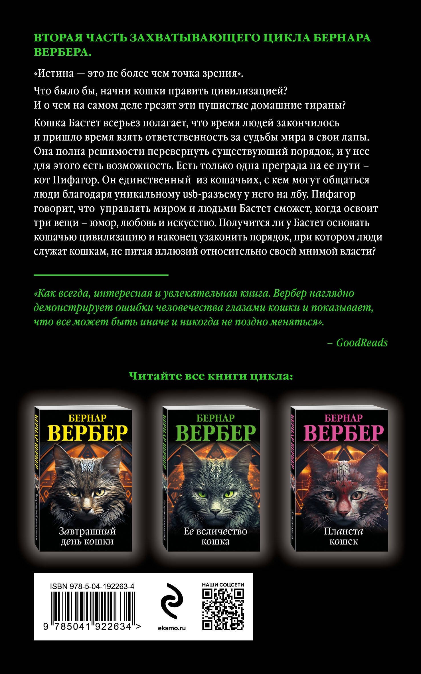 «Как всегда, интересная и увлекательная книга. Вербер наглядно демонстрирует ошибки человечества глазами кошки и показывает, что все может быть иначе и никогда не поздно меняться». — GoodReads