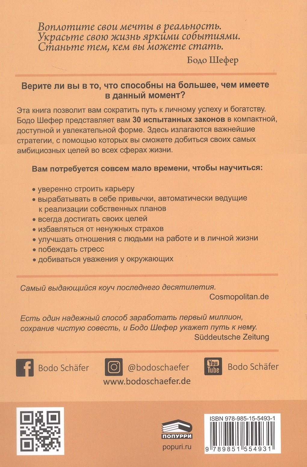 В компактной, доступной и увлекательной форме описаны 30 испытанных законов и важнейшие стратегии, с помощью которых в любой сфере жизни Вы сумеете добиться своих целей.