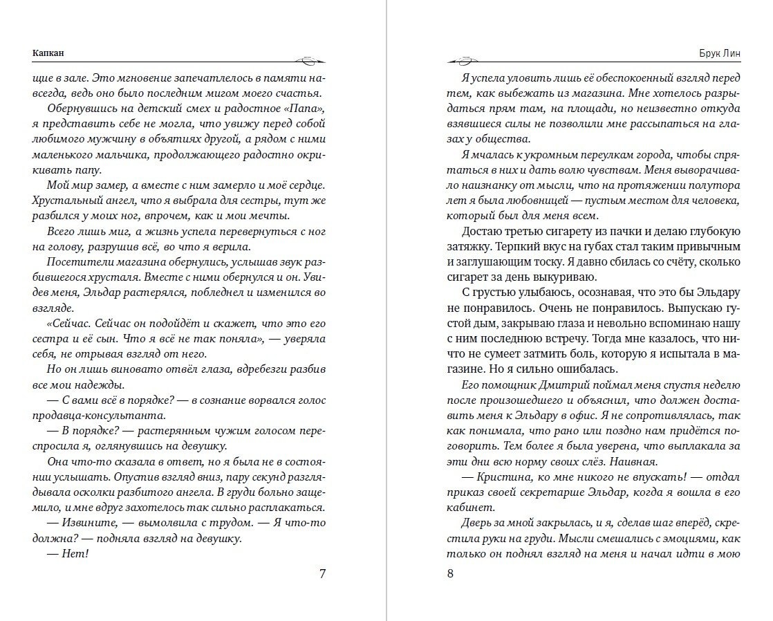 «Капкан» - современный любовный роман от Брук Лин, автора, в чьих книгах объединены вместе легкий стиль, живые герои, чувственные сцены, запоминающиеся диалоги и неожиданные повороты событий.