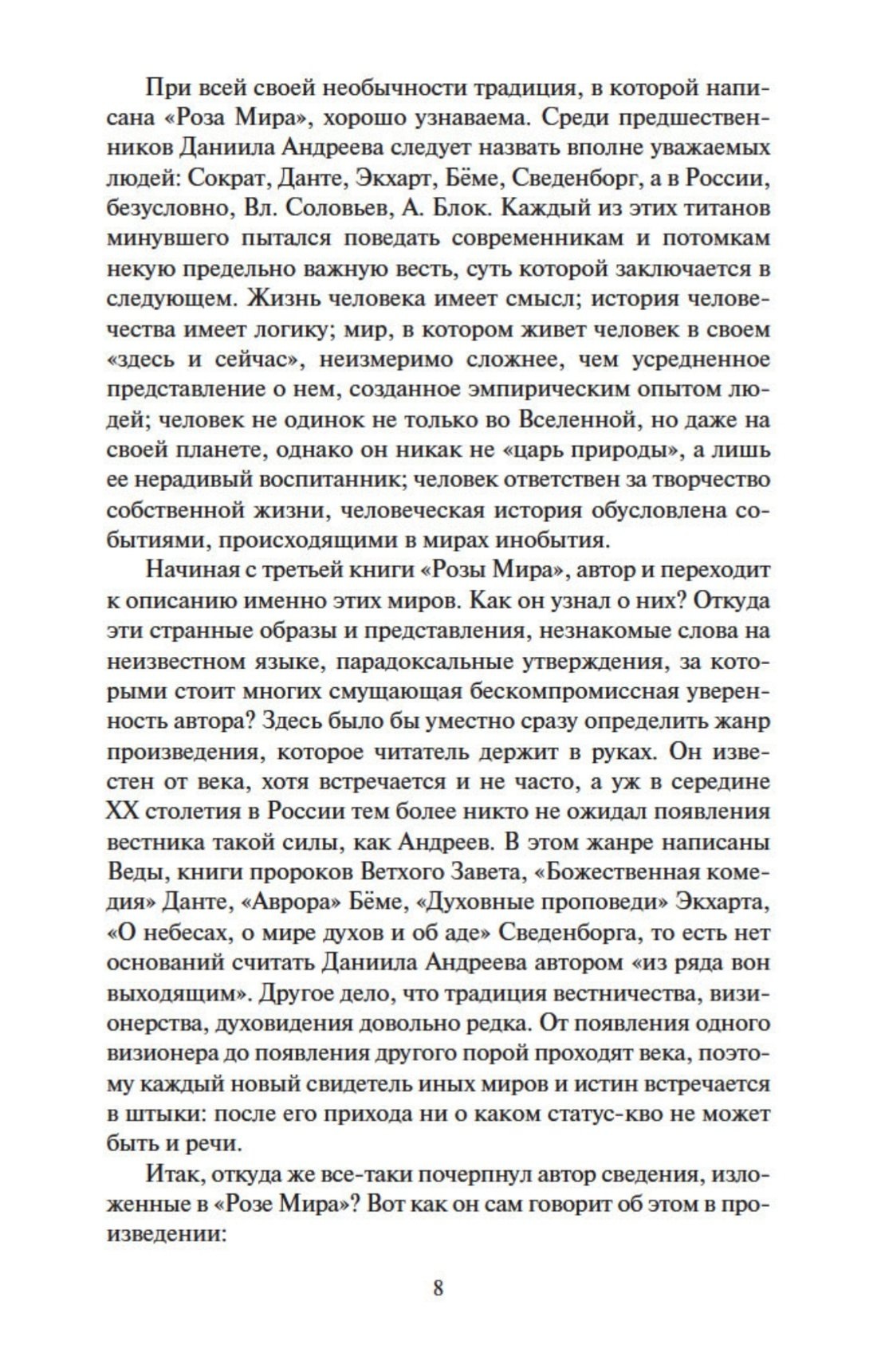 «Роза Мира» — главное произведение русской эзотерической литературы, созданное Даниилом Андреевым, поэтом и выдающимся мыслителем-мистиком, сыном известнейшего писателя начала XX века Леонида Андреева. Написанный на основе личного духовного опыта автора, этот оригинальный религиозно-философский трактат отмечен вдохновенным видением всемирового единства. В своих прозрениях того, что лежит «за гранью» обыденного опыта, автор стремится донести до читателя образ грядущей общемировой культуры, которую автор книги и именует Розой Мира.