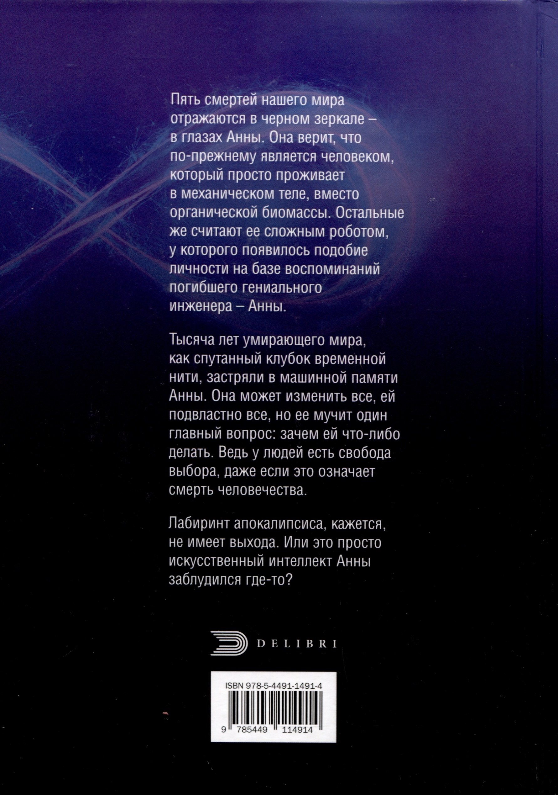 Пять смертей нашего мира отражаются в черном зеркале - в глазах Анны. Она верит, что по-прежнему является человеком, который просто проживает в механическом теле, вместо органической биомассы. Остальные же считают ее сложным роботом, у которого появилось подобие личности на базе воспоминаний погибшего гениального инженера - Анны. Тысяча лет умирающего мира, как спутанный клубок временной нити, застряли в машинной памяти Анны. Она может изменить все, ей подвластно все, но ее мучает один главный вопрос: зачем ей что-либо делать. Ведь у людей есть свобода выбора, даже если это означает смерть человечества. Лабиринт апокалипсиса, кажется, не имеет выхода. Или это просто искусственный интеллект Анны заблудился где-то?
