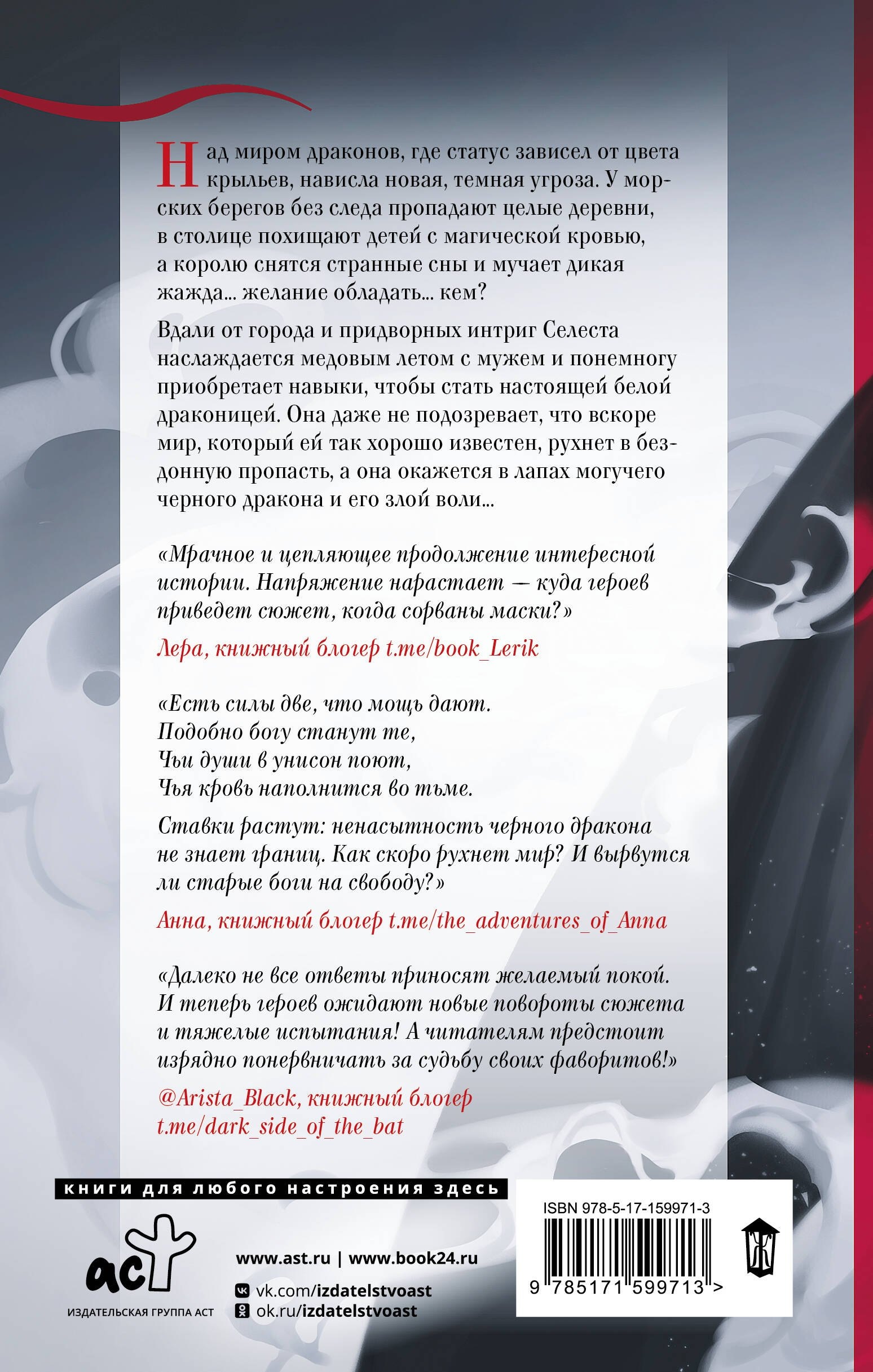 Вдали от города и придворных интриг Селеста наслаждается медовым летом с мужем, осваивая способности белой драконицы. Девушка и не догадывается о хрупкости своего счастья, не подозревает, как быстро известный ей мир рухнет в бездонную пропасть, а она окажется в лапах могучего черного дракона, покоряясь его злой воли…