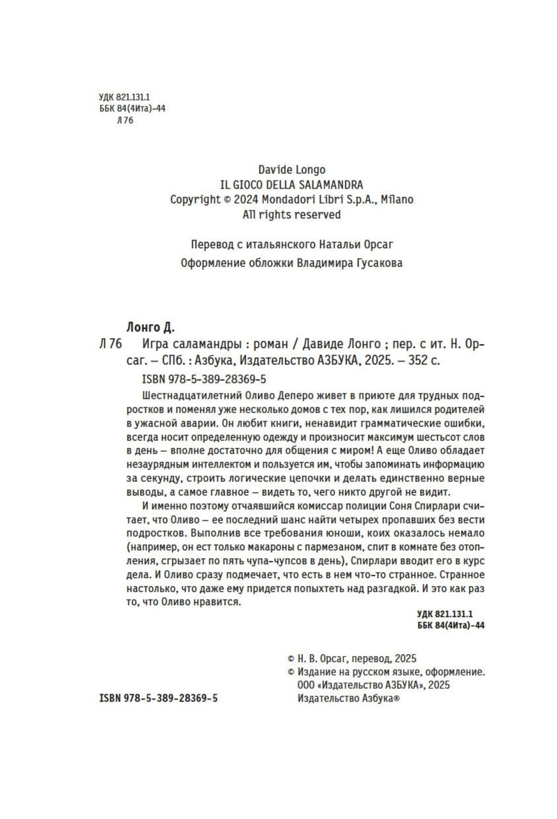 И именно поэтому отчаявшийся комиссар полиции Соня Спирлари считает, что Оливо — ее последний шанс найти четырех пропавших без вести подростков. Выполнив все требования юноши, коих оказалось немало (например, он ест только макароны с пармезаном, спит в комнате без отопления, сгрызает по пять чупа-чупсов в день), Спирлари вводит его в курс дела. И Оливо сразу подмечает, что есть в нем что-то странное. Странное настолько, что даже ему придется попыхтеть над разгадкой. И это как раз то, что Оливо нравится.
