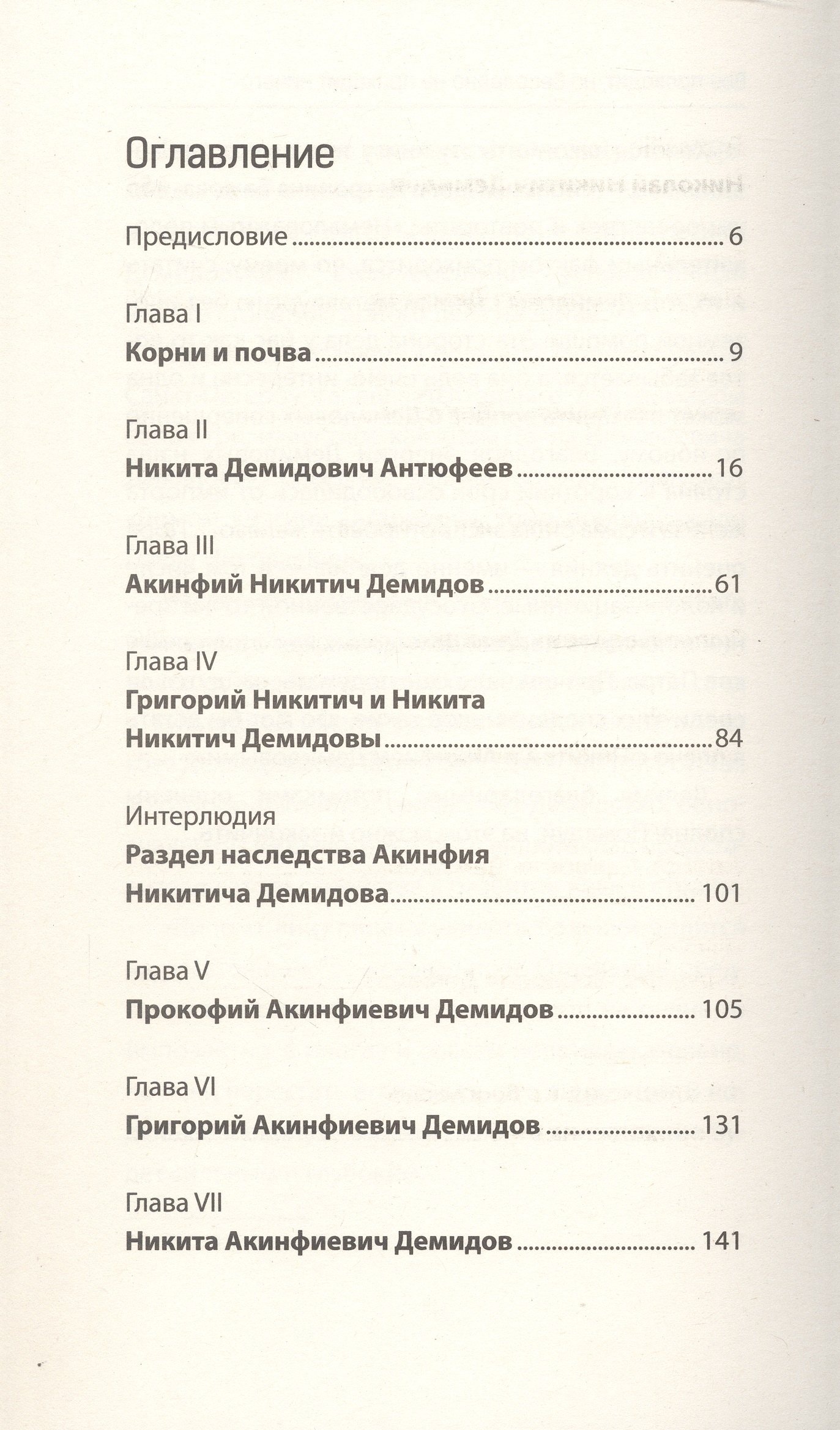 Род Демидовых начался с Никиты Демидовича Антюфеева. Простой тульский кузнец впечатлил царя Петра своим мастерством и стал одним из самых влиятельных людей своего времени. С ним и его потомками связано множество мрачных легенд, таких как, например, история о затопленных в подвалах рабочих, которым хозяин приказал чеканить фальшивую монету, или о том, как предприниматель сжег построенный по его же приказу дом, в котором до этого жил ведший против него следствие чиновник. Со временем Демидовы стали настоящими аристократами и породнились с самыми знатными фамилиями Российской империи.