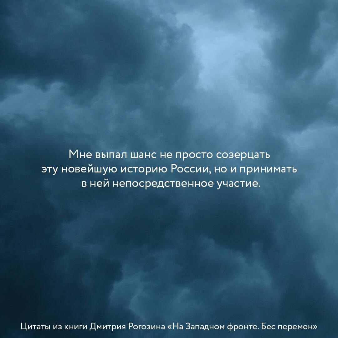 «На Западном фронте. Бес перемен» – книга, написанная в августе-сентябре 2022 года Дмитрием Рогозиным после ухода с должности главы «Роскосмоса». В книге он описал людей и события, которые формировали новейшую историю постсоветской России — от трагического распада Советского Союза до военных операций России в Грузии и на Украине. Автор признается, что описал в книге только то, что считает важным и что заставляет русских людей думать о будущем и судьбе своей Родины. Это взгляд на русскую историю русскими глазами.