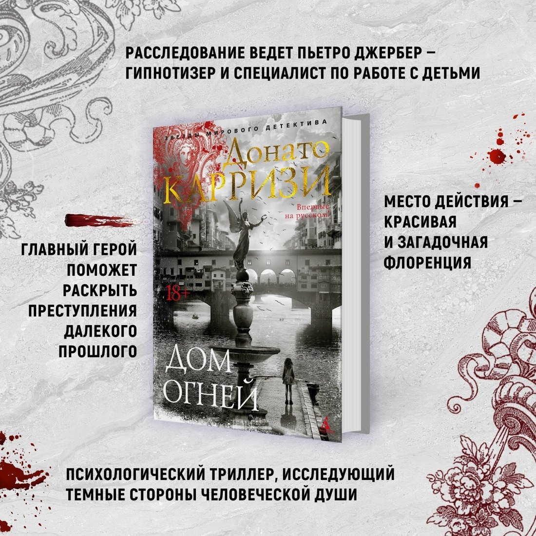 Донато Карризи — известный итальянский писатель и сценарист, специалист в области криминалистики и поведенческих наук, лауреат итальянской премии Bancarella (2009), французской премии Prix SNCF du polar (2011) и других, автор бестселлеров, переведенных на 30 с лишним языков и расходящихся многомиллионными тиражами. Три свои книги — «Девушка в тумане» (2017), «Девушка в лабиринте» (2019) и «Я — бездна» (2022) — Карризи сам экранизировал. «Дом огней» — продолжение его блестящих романов «Дом голосов» и «Дом без воспоминаний». В доме на холме живет десятилетняя девочка по имени Эва — без родителей, но с домоправительницей и финской студенткой, она же няня, Майей Сало. А еще у Эвы есть воображаемый друг, и то, что говорит и делает этот друг, вызывает тревогу. Майя обращается к Пьетро Джерберу, флорентийскому гипнотисту, который работает с травмированными детьми, — тот, правда, и сам после событий предыдущих романов не в лучшем душевном состоянии, однако помочь Эве больше некому. Джербер берется за дело — и выясняется, что Эвин воображаемый друг знает о Джербере слишком много. Этот таинственный друг знает даже обстоятельства, которые сопутствовали смерти Джербера много-много лет назад… Впервые на русском!