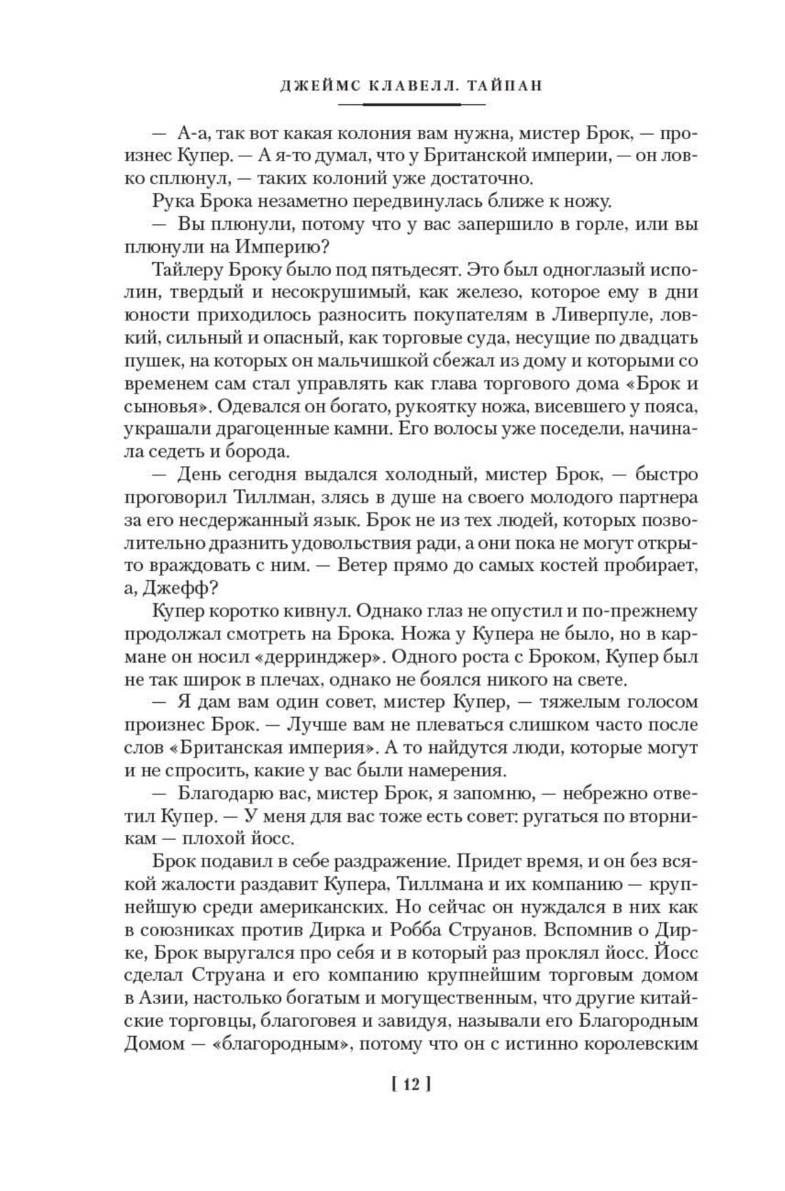 Южный Китай в 1840–1841 годах. Европейские торговцы и авантюристы впервые начали проникать в Китай, сказочно богатую, полную опасностей и загадок страну. Жизнью платили эти люди за слабость, нерешительность и незнание обычаев Востока. И в это время англичанин Дирк Струан поставил себе целью превратить пустынный остров Гонконг в несокрушимый оплот британского могущества и подняться на вершину власти, став верховным повелителем — тайпаном.