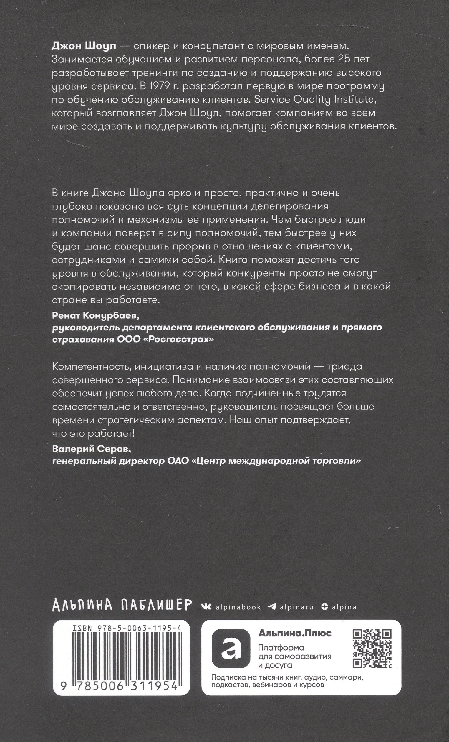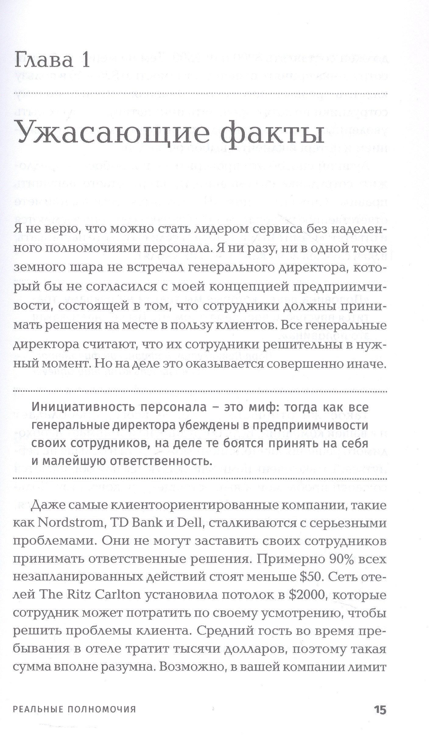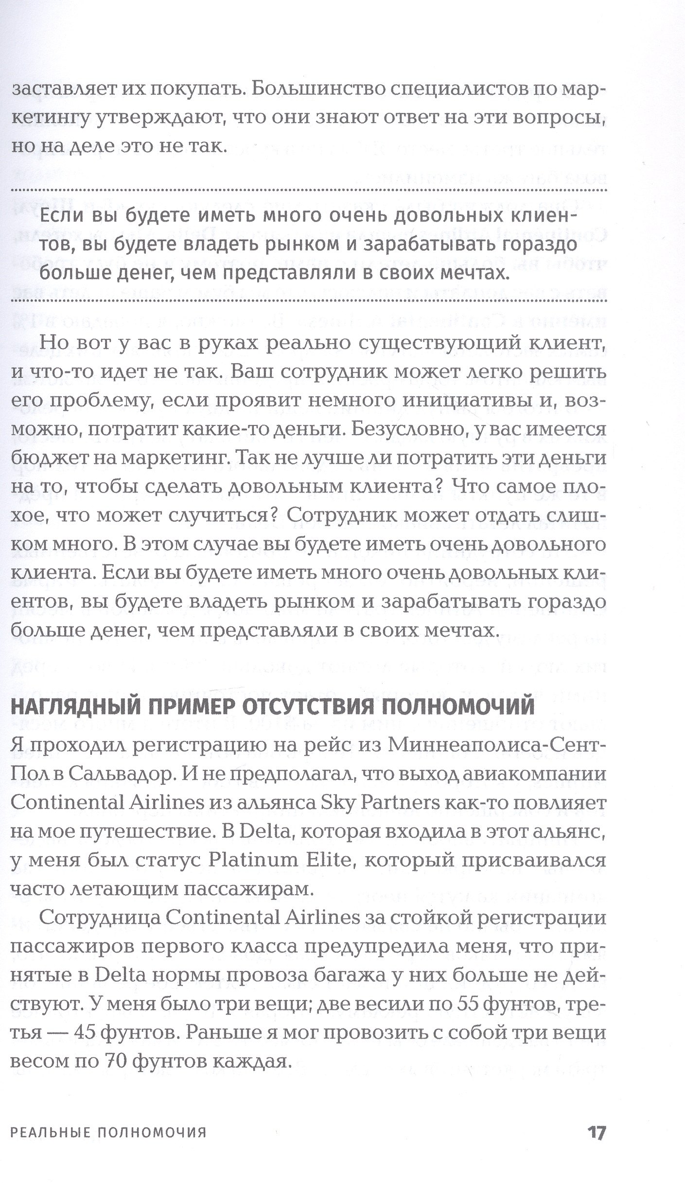Удивительно пустопорожняя книга про сферического коня в вакууме. Главный тезис понятен с первой страницы: у сотрудника должны быть полномочия и ресурсы решать проблемы клиента на месте. В книге есть пара примеров из индустрии услуг, иллюстрирующих эту идею, остальное – декларативный текст, изобилующий мотивирующими цитатами и восклицательными знаками.