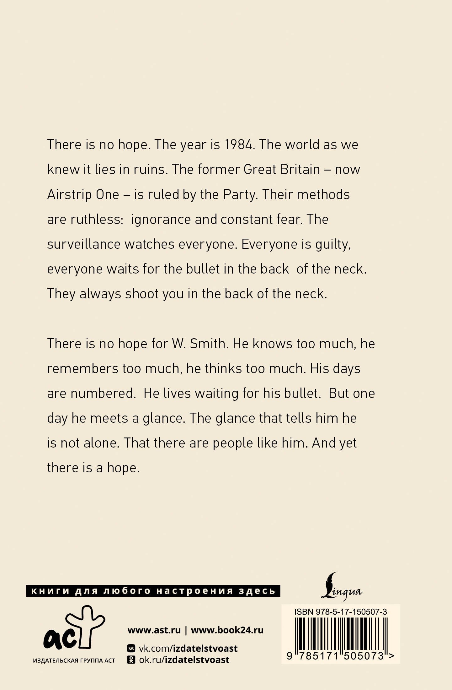 Потеряли правду в море лжи? Не знаете, кому доверять? С экранов на вас льются потоки ненависти? Добро пожаловать в "1984". В ваших руках руководство по выживанию в мире официально установленного двоемыслия. В мире, где дважды два равно пяти. В мире, где нет ни прошлого, ни будущего, есть только уродливое настоящее.Джордж Оруэлл – английский писатель и журналист, социалист, воевавший против фашистов в Испании. В далеком 1949 г. он написал визионерскую антиутопию "1984" – одну из самых продаваемых книг нашего времени. Её мир – это мир элиты, насаждающей невежество. Её контроль над человеком полон и целен. Даже неортодоксальные мысли в этом обществе запрещены. Согрешившие мыслью отправляются на перевоспитание в мрачные застенки Министерства Любви. Главный герой – один из тех несчастных, что слишком привязаны к миру прошлого. Дни таких, как он, сочтены. Зная это, он решается на отчаянный бунт в обществе непререкаемой догмы – завести дневник. Этот дневник расскажет о днях последнего человека в Европе, осмелившегося мечтать и любить. Книга издана в неадаптированной версии. Наслаждаясь языком и новоязом Дж. Оруэлла в оригинале, не забывайте, что БОЛЬШОЙ БРАТ ПРИСМАТРИВАЕТ ЗА ВАМИ.