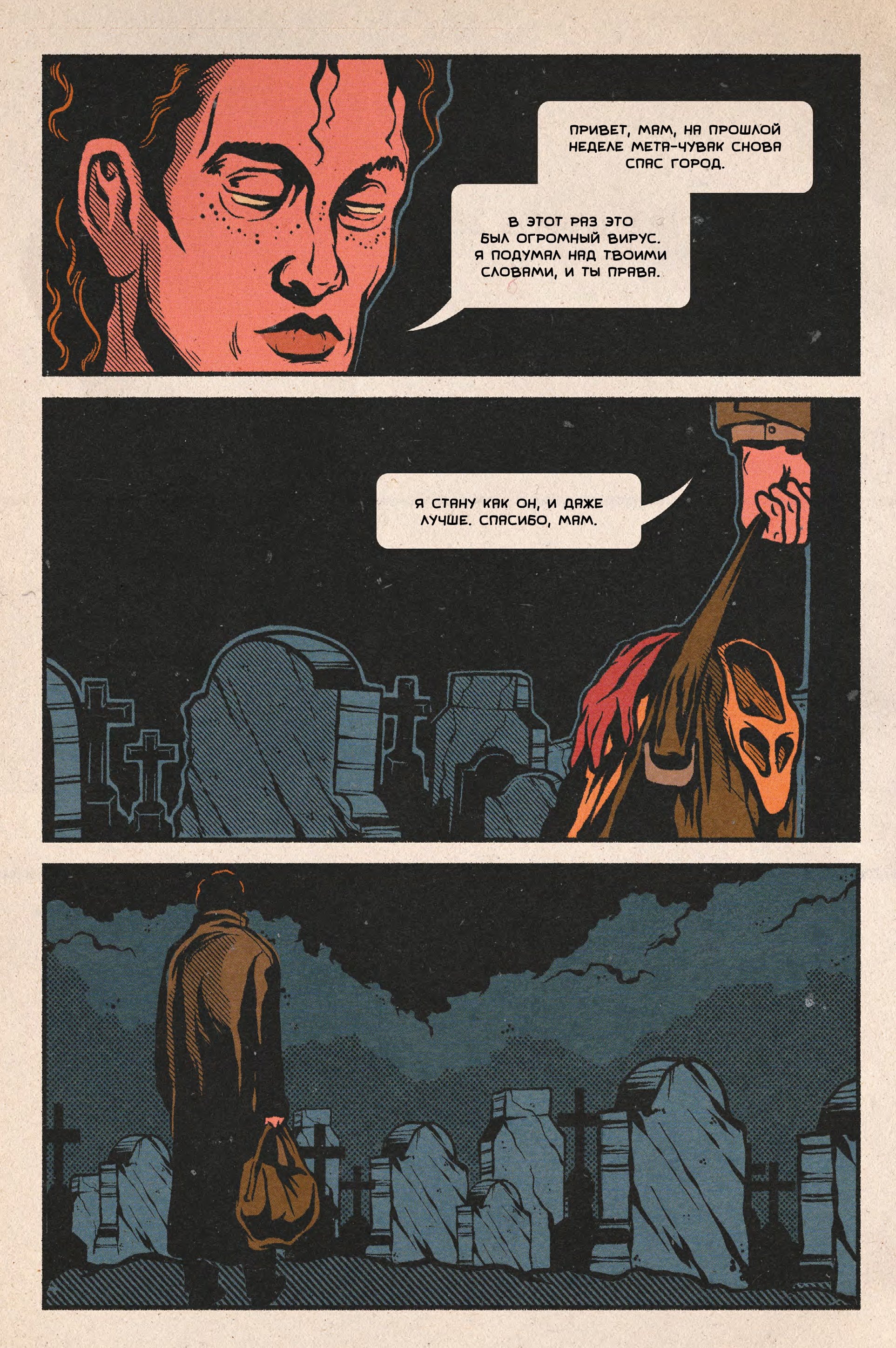 Добро пожаловать в новую реальность!Мы находимся на пороге новой эры технологического развития, но лишь богу известно, куда заведет человечество обилие новых технологий и способов взаимодействия с реальным и виртуальным мирами.Наш герой Мета-Чувак через призму иронии над современным обществом потребления исследует стремительно разрастающийся цифровой мир. Он вооружён сарказмом, бластером-расцифровывателем и отсылками к классическим комиксам. И да поможет Святой Админ тем, кто встанет у него на пути...