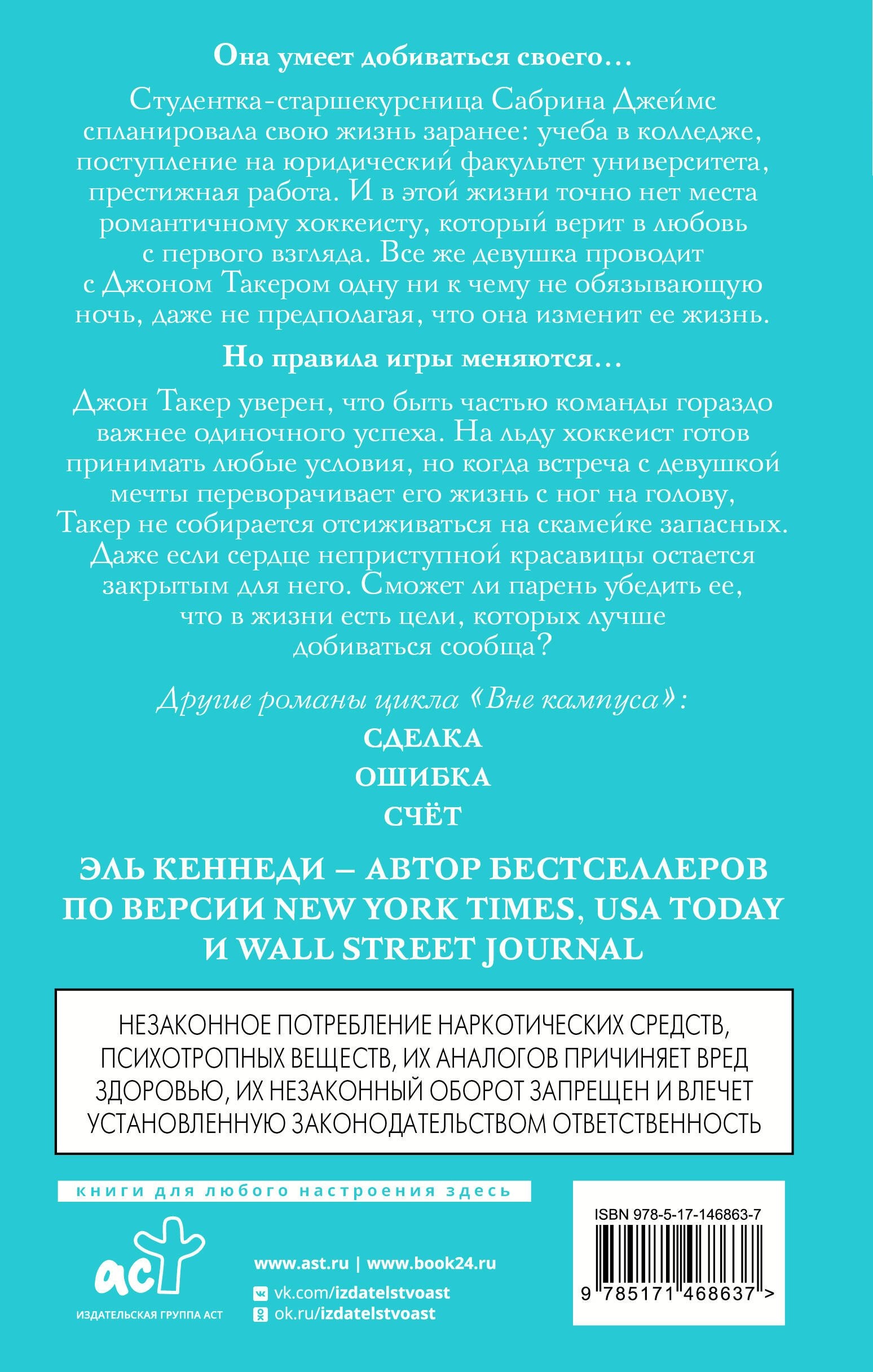 Джон Такер уверен, что быть частью команды гораздо важнее одиночного успеха. На льду хоккеист готов принимать любые условия, но когда встреча с девушкой мечты переворачивает его жизнь с ног на голову, Такер не собирается отсиживаться на скамейке запасных. Даже если сердце неприступной красавицы остается закрытым для него. Сможет ли парень убедить ее, что в жизни есть цели, которых лучше добиваться сообща?