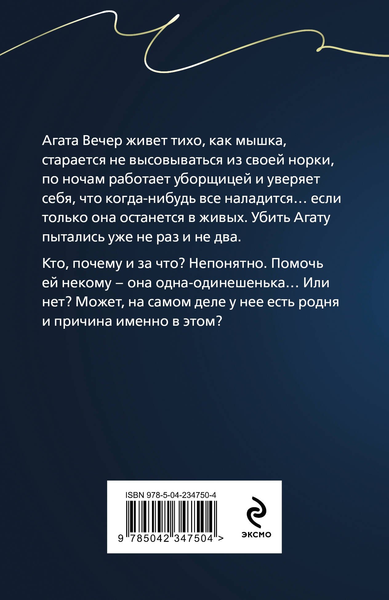 Агата Вечер живет тихо, как мышка, старается не высовываться из своей норки, по ночам работает уборщицей и уверяет себя, что когда-нибудь все наладится… если только она останется в живых. Убить Агату пытались уже не раз и не два. Кто, почему и за что? Непонятно. Помочь ей некому — она одна-одинешенька… Или нет? Может, на самом деле у нее есть родня и причина именно в этом?