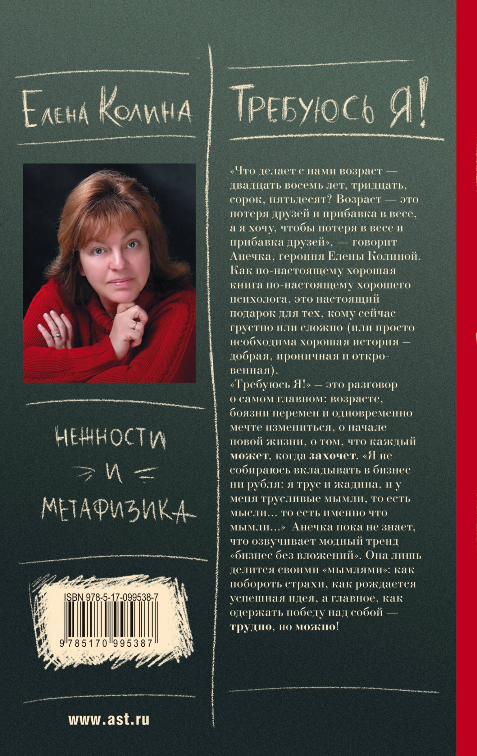 "Что делает с нами возраст - двадцать восемь лет, тридцать, сорок, пятьдесят? Возраст - это потеря друзей и прибавка в весе, а я хочу, чтобы потеря в вече и прибавка друзей", - говорит Анечка, героиня Елены Колиной. Как по-настоящему хорошая книга по-настоящему хорошего психолога, это настоящий подарок для тех, кому сейчас грустно или сложно (или просто необходима хорошая история - добрая, ироничная и откровенная). "Требуюсь я!" - это разговор о самом главном: возрасте, боязни перемен и одновременно мечте измениться, о начале новой жизни, о том, что каждый может, когда захочет. "Я не собираюсь вкладывать в бизнес ни рубля: я трус и жадина, и у меня трусливые мымли, то есть, мысли… то есть, именно что мымли…"