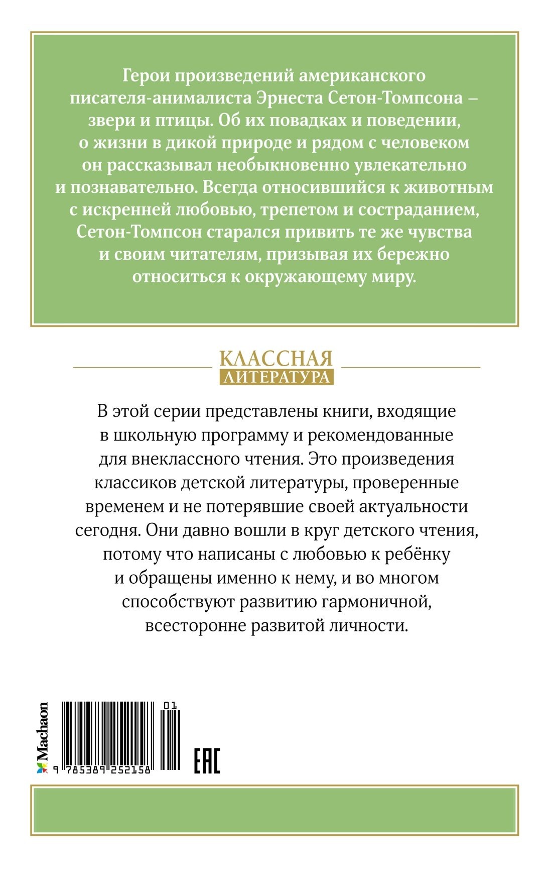 Герои произведений американского писателя-анималиста Эрнеста Сетон-Томпсона – звери и птицы. Об их повадках и поведении, о жизни в дикой природе и рядом с человеком он рассказывал необыкновенно увлекательно и познавательно. Всегда относившийся к животным с искренней любовью, трепетом и состраданием, Сетон-Томпсон старался привить те же чувства и своим читателям, призывая их бережно относиться к окружающему миру.