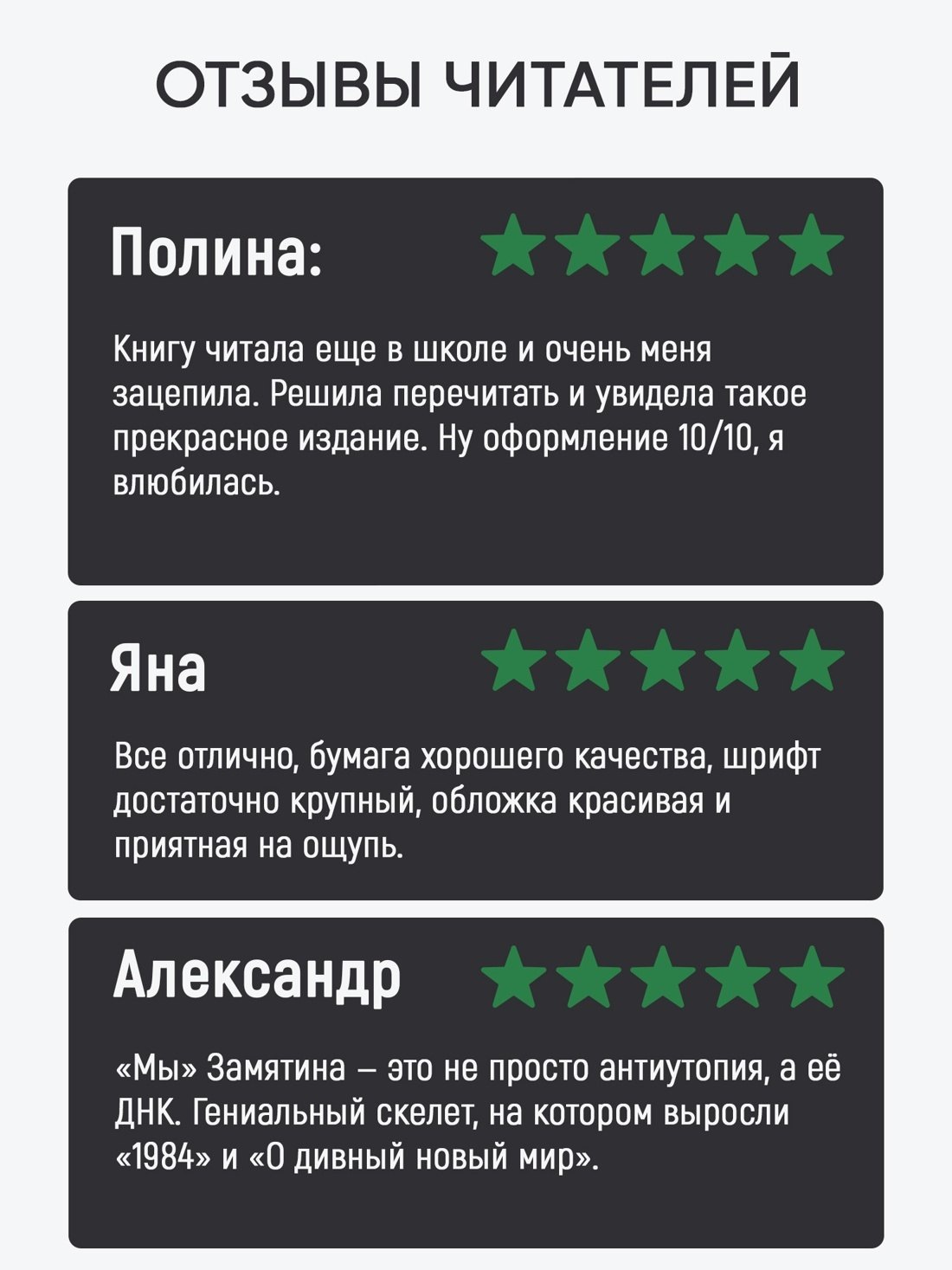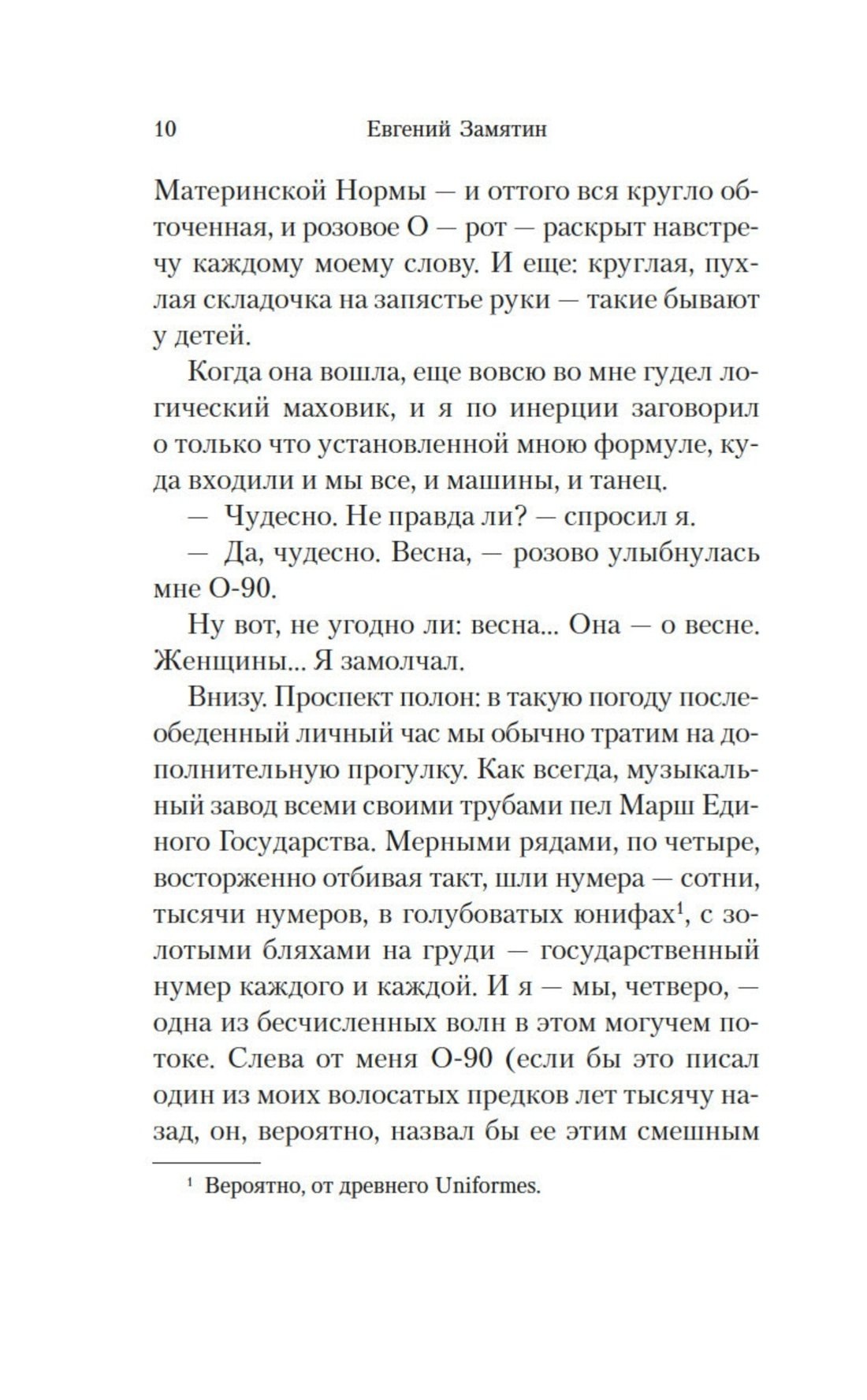 Роман Евгения Замятина «Мы» (1921) — первая антиутопия ХХ века, переведенная на многие языки, но на родине писателя опубликованная лишь в 1988 году, спустя несколько десятков лет после создания. Герой романа «Мы» — математик и инженер — живет в гигантском городе-государстве, отделенном стеной от внешнего мира. Ему кажется, что все здесь устроено правильно и разумно: люди вместо имен имеют номера, носят одинаковую одежду, их жизнь строго регламентирована. Но постепенно герой начинает понимать, что в этом идеально устроенном обществе нет места свободе и любви.