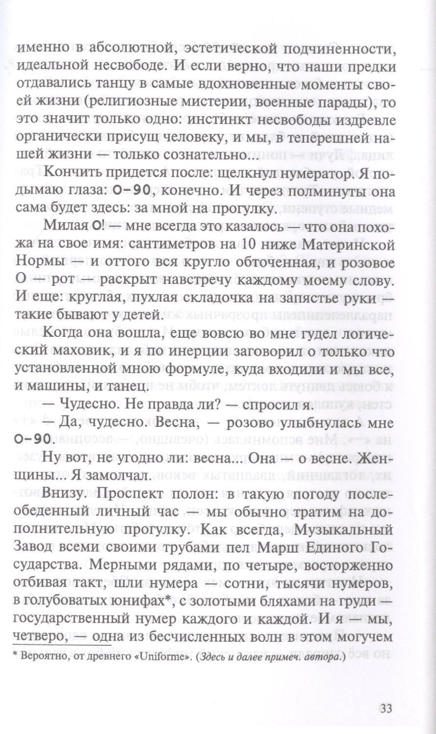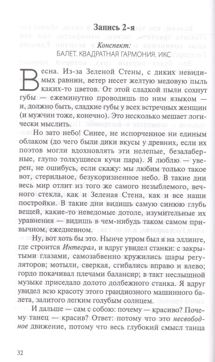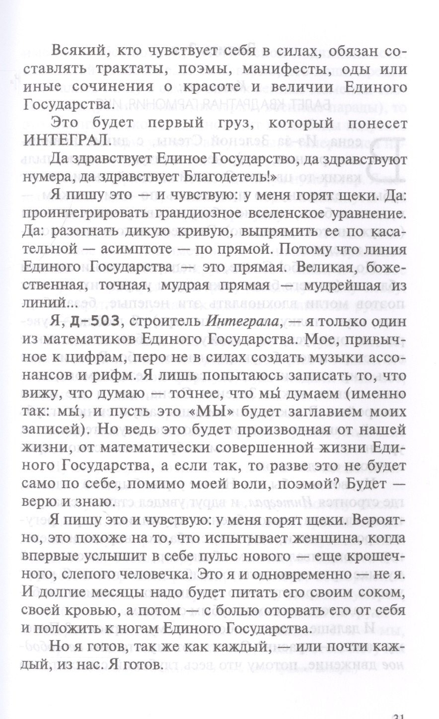 .Конечно, искреннее, честное и откровенное исследование этой проблемы является оскорбительным для тех, кто предпочитает быть частью толпы, или тех, кто пытается держать ту или иную часть человечества в состоянии толпы. Вот почему роман "Мы" не мог быть напечатан в Советской России и, вероятно, не понравился бы тем, чья духовная жизнь сводится к соблюдению механических стандартов механистической цивилизации, которая не нуждается в творческой индивидуальности.