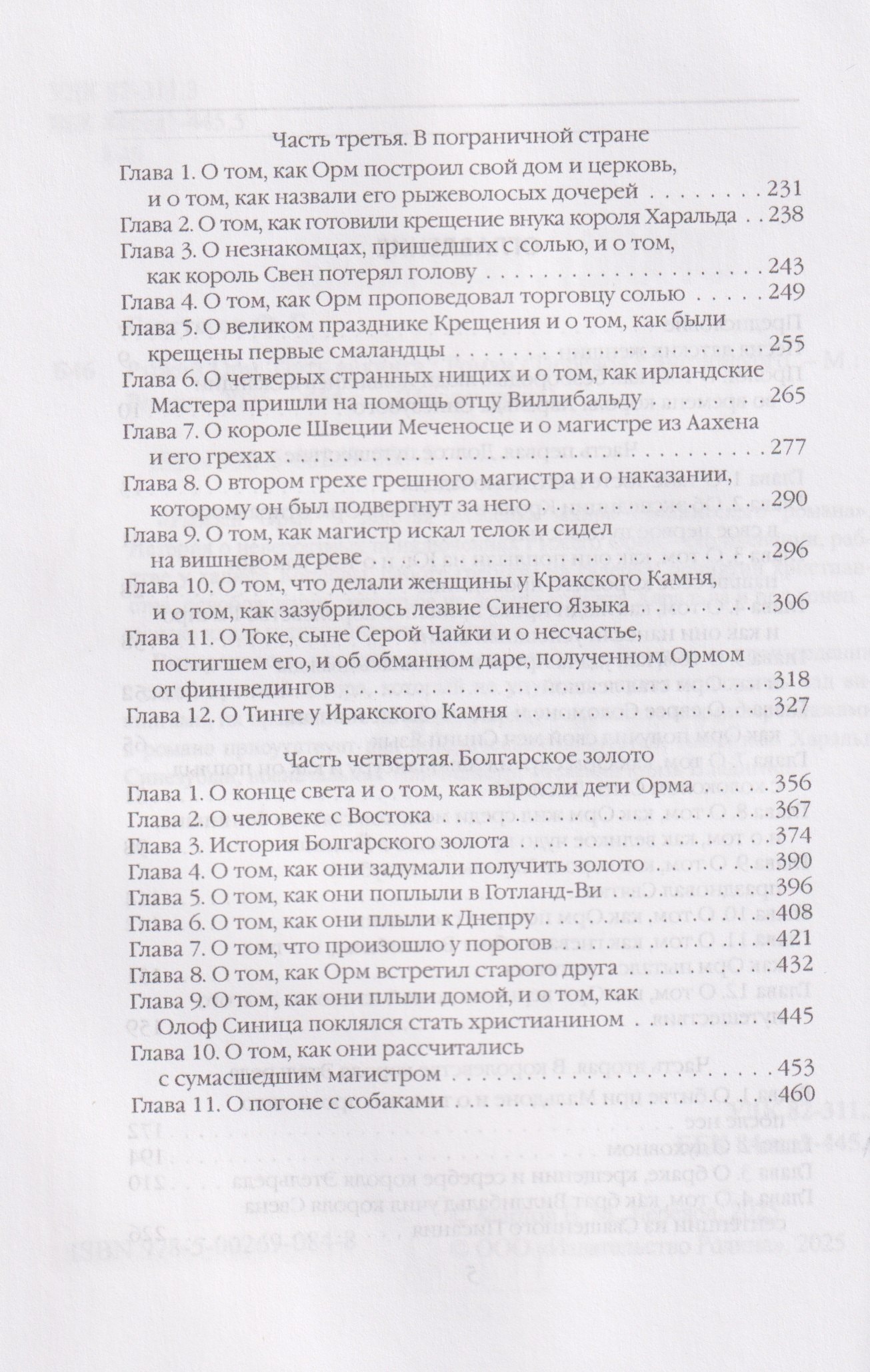 «Рыжый Орм» – золотая классика жанра «викингского романа». История о невероятных приключениях Рыжего Орма – его пленении, рабстве у халифа Кордовы, работе гребцом на галерах, принятии христианства, освобождении, женитьбе на дочери конунга Харальда и под конец – поиске клада у днепровских порогов. Выверенность исторического материала сочетается в произведении с едкой иронией автора, который не упускает случая подшутить над викингами, их нравами и обычаями. Наряду с вымышленными персонажами в романе присутствует ряд исторических личностей, таких как: Харальд Синезубый, военачальник Аль-Мансур, киевский князь Владимир.