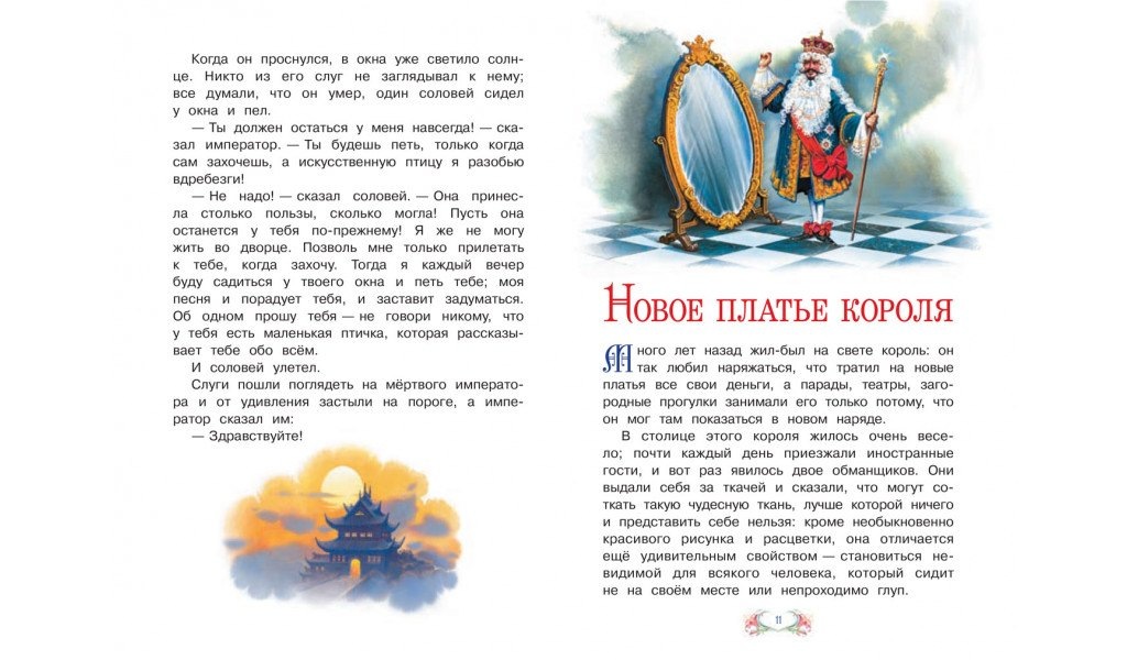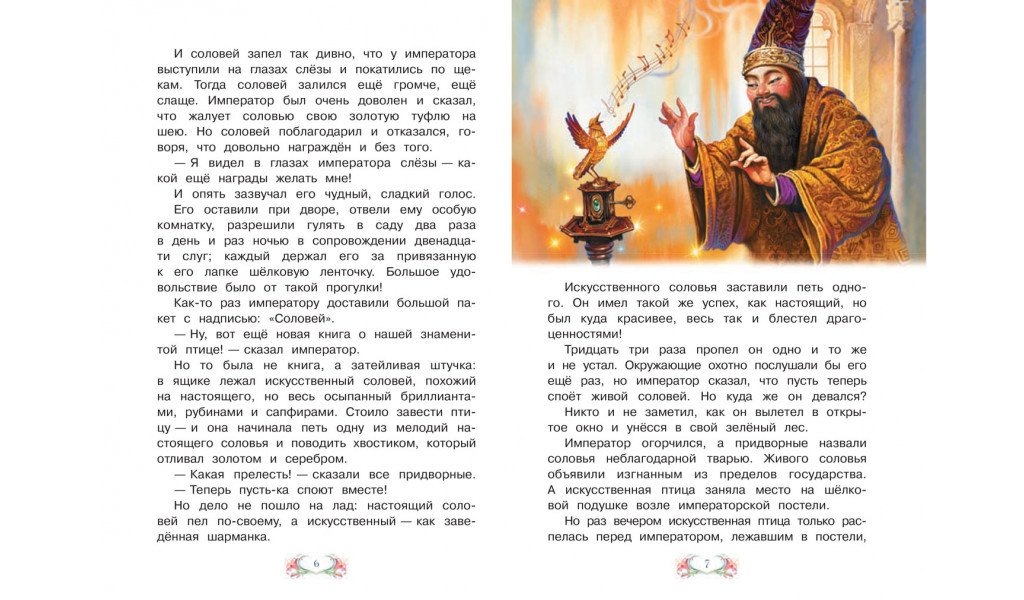 В книгу вошли две сказки Андерсена в переводе прекрасного переводчика Анны Ганзен. Это «Соловей» и «Новое платье короля». Благодаря своей поэтичности и красоте эти сказки пробуждают в душе каждого самые светлые и тёплые чувства. Замечательный художник Виктор Нечитайло создал чудесные иллюстрации, которые великолепно оживляют книгу.