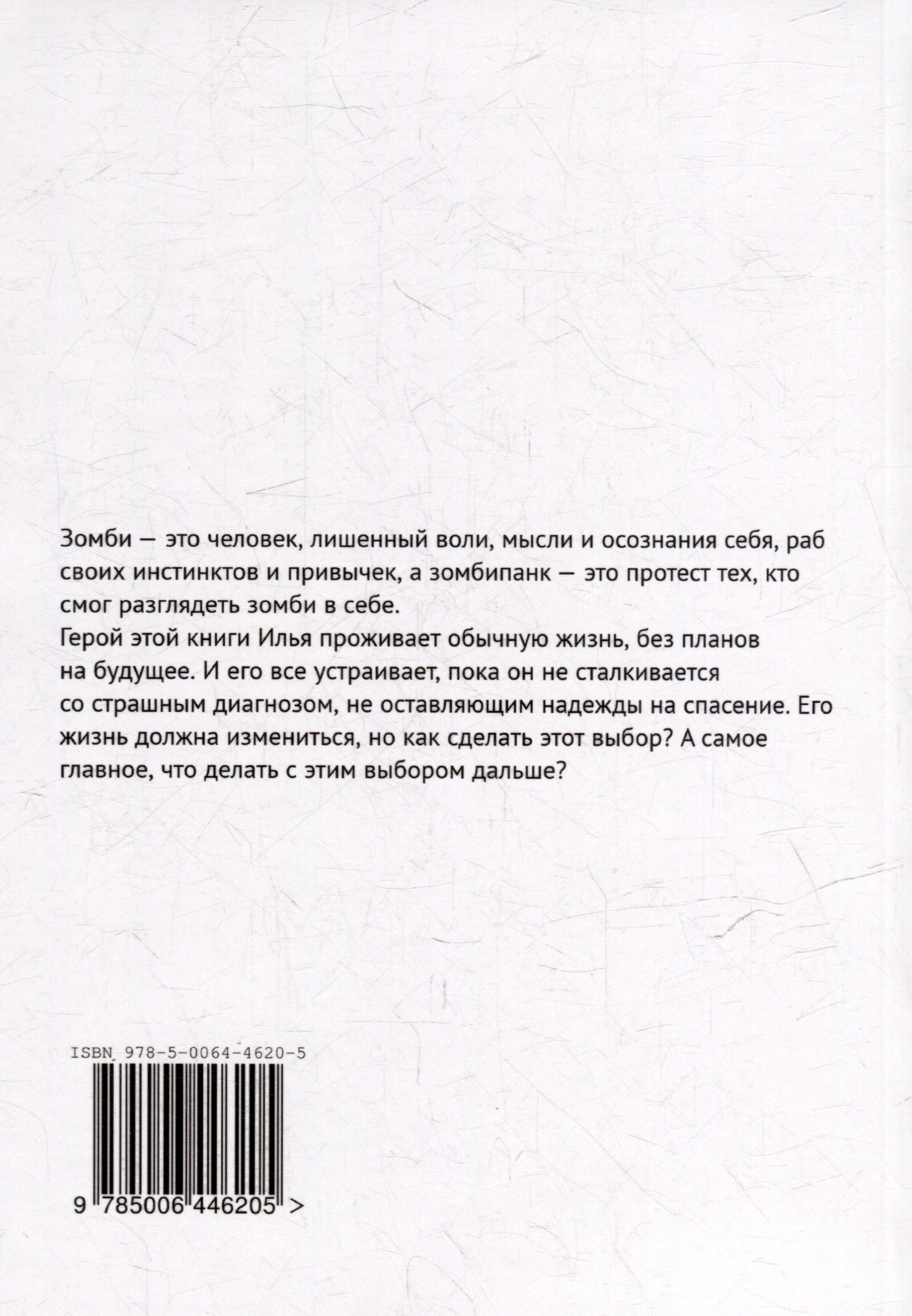 Зомби — это человек, лишенный воли, мысли и осознания себя, раб своих инстинктов и привычек, а зомбипанк — это протест тех, кто смог разглядеть зомби в себе. Герой этой книги Илья проживает обычную жизнь, без планов на будущее. И его все устраивает, пока он не сталкивается со страшным диагнозом, не оставляющим надежды на спасение. Его жизнь должна измениться, но как сделать этот выбор? А самое главное, что делать с этим выбором дальше?