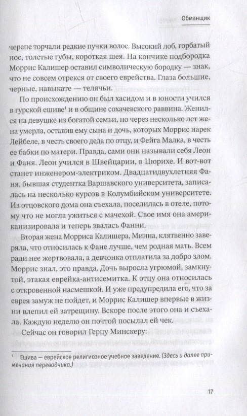 Минскер не может завершить ни одну начатую им книгу, однако же кое-кто из евреев-эмигрантов, говорящих, как и он, на идише, считает его гением-неудачником, заблудшей душой из прославленной раввинской семьи, ведь он постоянно тянет деньги из жены, друзей и подруг, но имеет потенциал стать великим человеком.