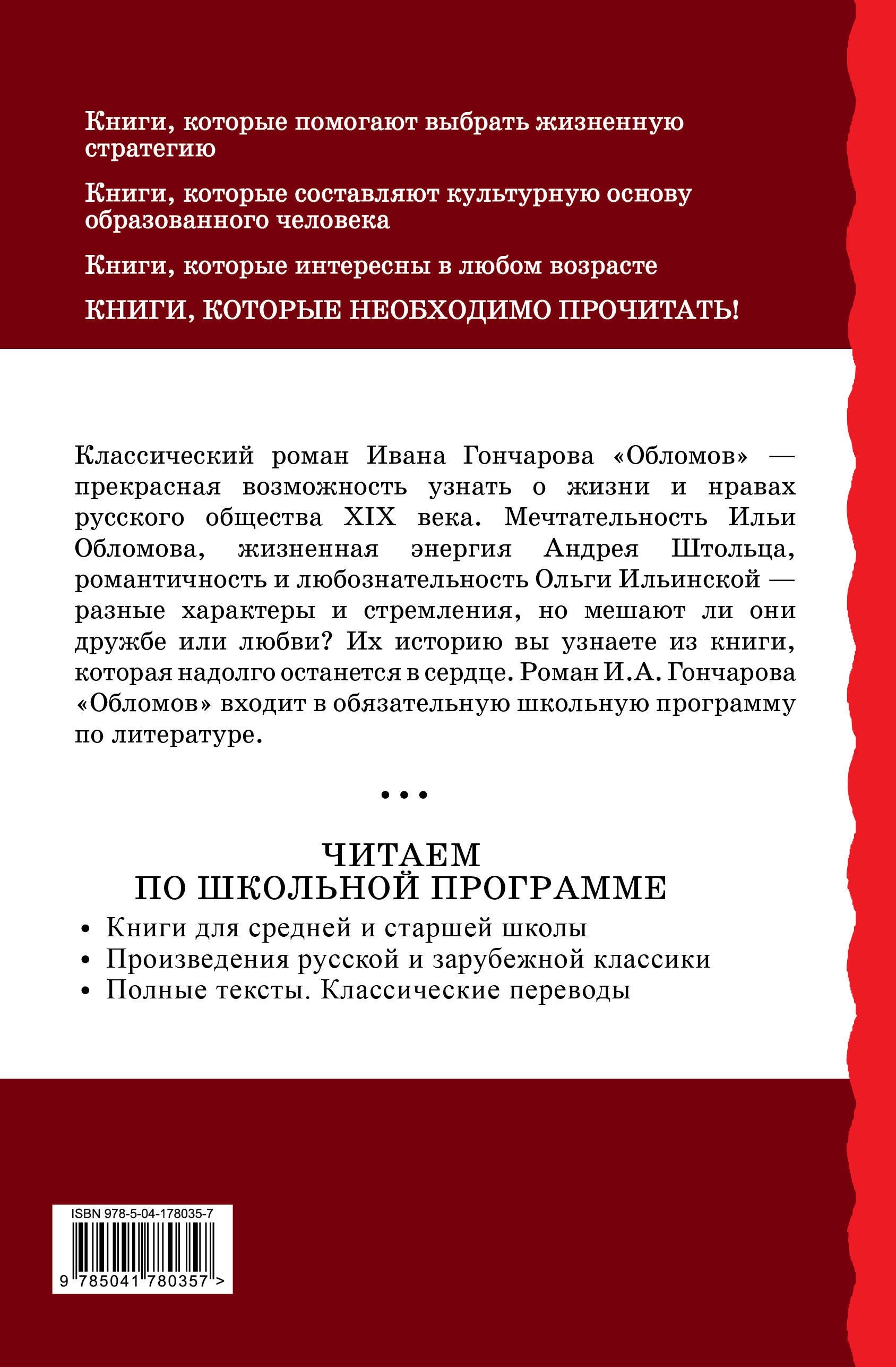Главные герои романа Ивана Гончарова — мягкий и мечтательный Илья Обломов, жизнелюбивый и деятельный Андрей Штольц, нежная и любознательная Ольга Ильинская. Их история взаимоотношений показывает, как важно не останавливаться жить ни на минуту и заниматься тем, что приносит радость, развивает ум.