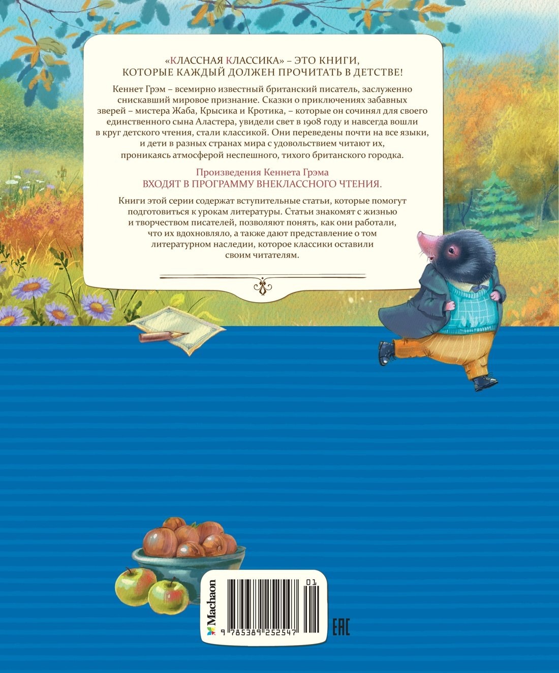 Кеннет Грэм – всемирно известный британский писатель, заслуженно снискавший мировое признание. Сказки, о приключениях забавных зверей: мистера Жаба, Крысика и Кротика, которые он сочинял для своего единственного сына Аластера, увидели свет в 1908 году и навсегда вошли в круг детского чтения, стали классикой. Они переведены почти на все языки, и дети в разных странах мира с удовольствием читают их, проникаясь атмосферой неспешного тихого британского городка.