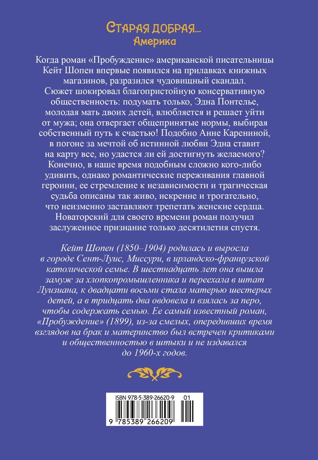 Новый перевод эпохального произведения американской литературы. Роман «Пробуждение» Кейт Шопен, считающийся одним из первых феминистических романов, опередил свое время и был воспринят критиками и общественностью в штыки, вплоть до запрета в библиотеках. О книге вновь вспомнили только в 1960-е годы, и она заняла свое достойное место в ряду классических произведений американской литературы.