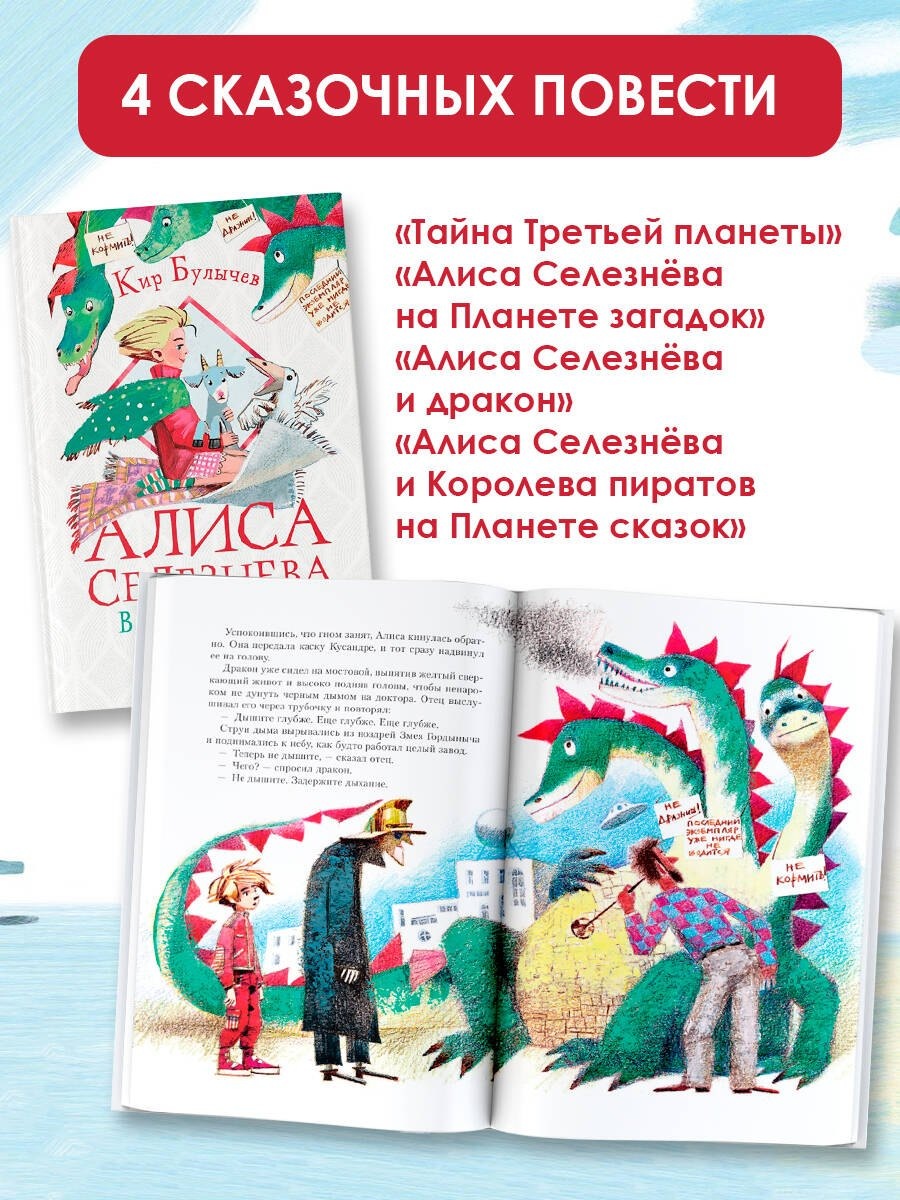 Алиса Селезнёва – самая известная героиня Кира Булычёва. После ошеломительного успеха мультфильма "Тайна Третьей планеты", Кир Булычёв написал специально для младших школьников несколько историй о приключениях девочки с Земли. В книгу вошли четыре повести: "Тайна Третьей планеты", "Алиса Селезнёва на Планете загадок", "Алиса Селезнёва и дракон", "Алиса Селезнёва и Королева пиратов на Планете сказок".